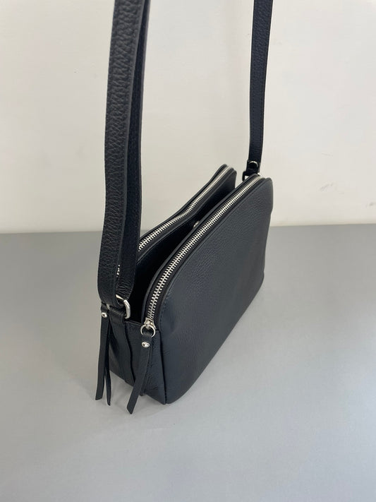 Juoda natūralios odos moteriška rankinė per petį