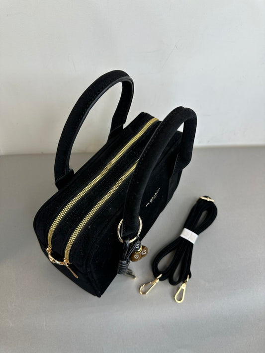 Juoda zomšinė rankinė moterims