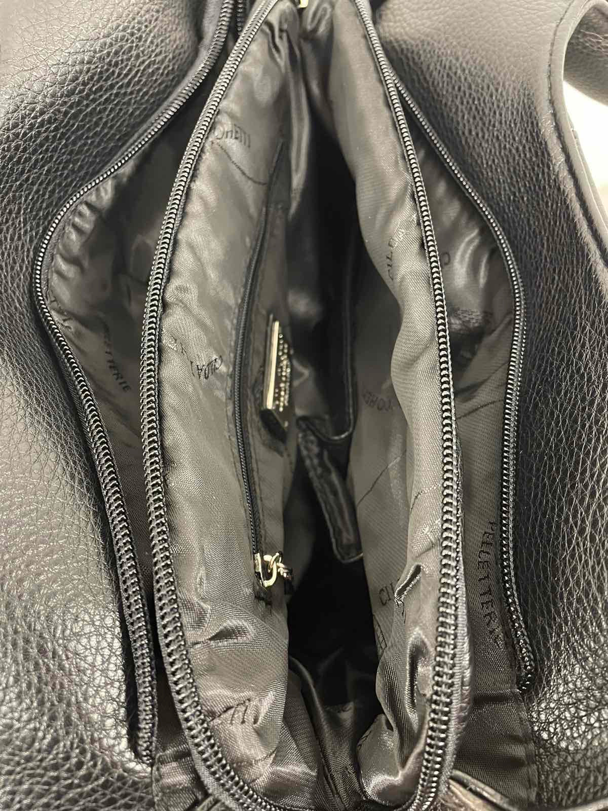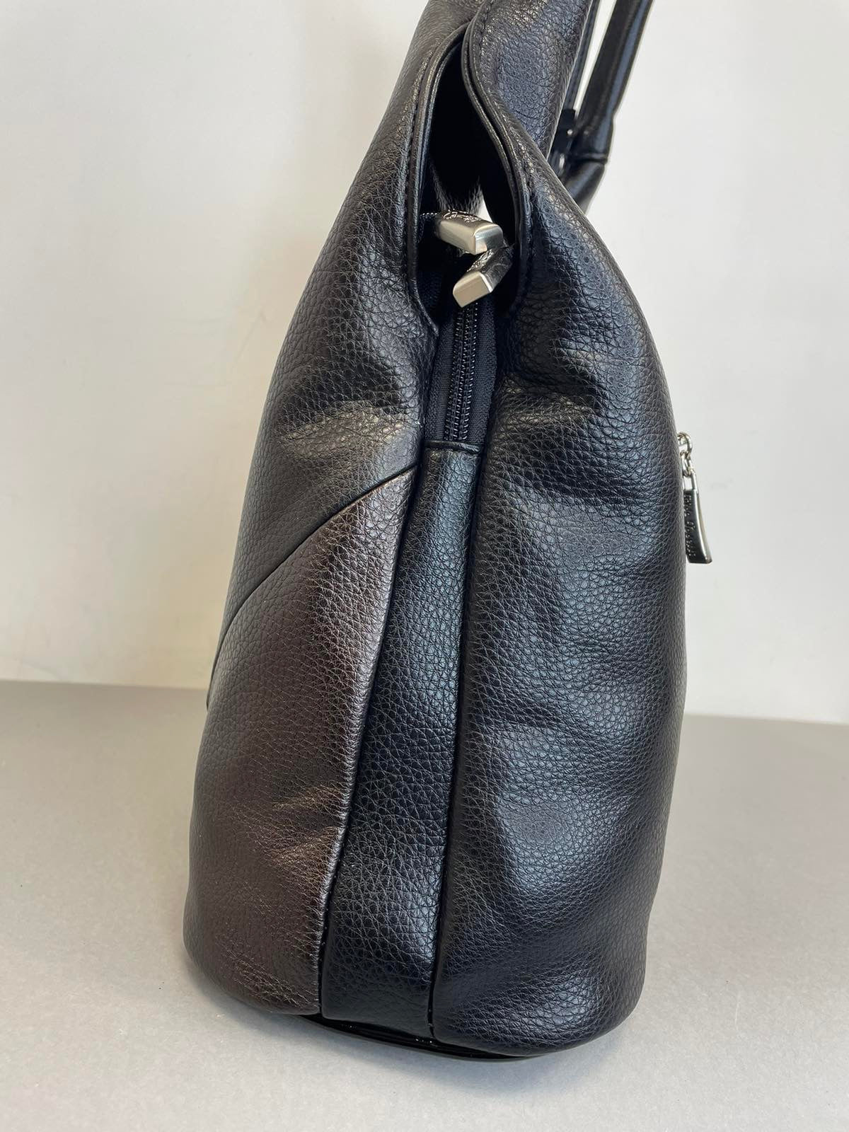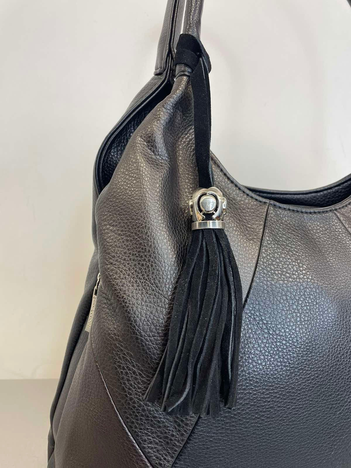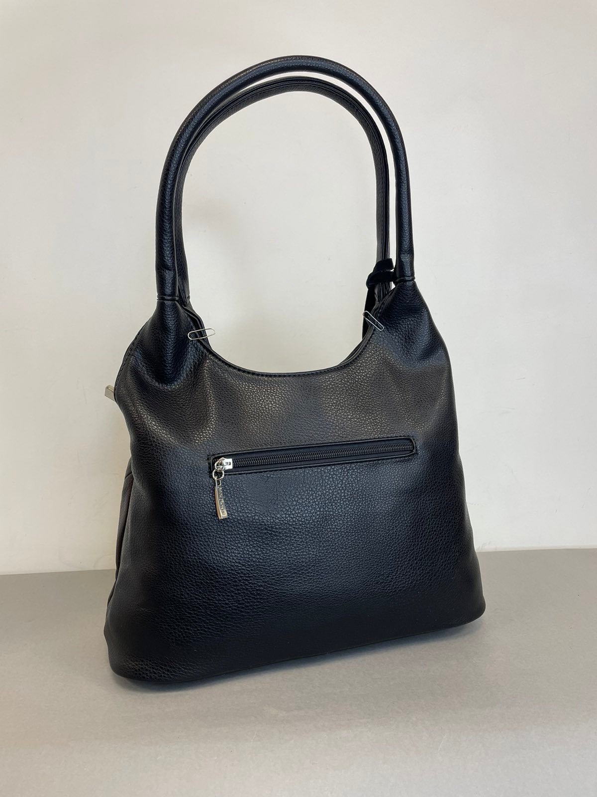 Juodos spalvos moteriška Gilda Tohetti rankinė. Rankinė turi dvi ilgas rankenas nešiojimui ant peties.