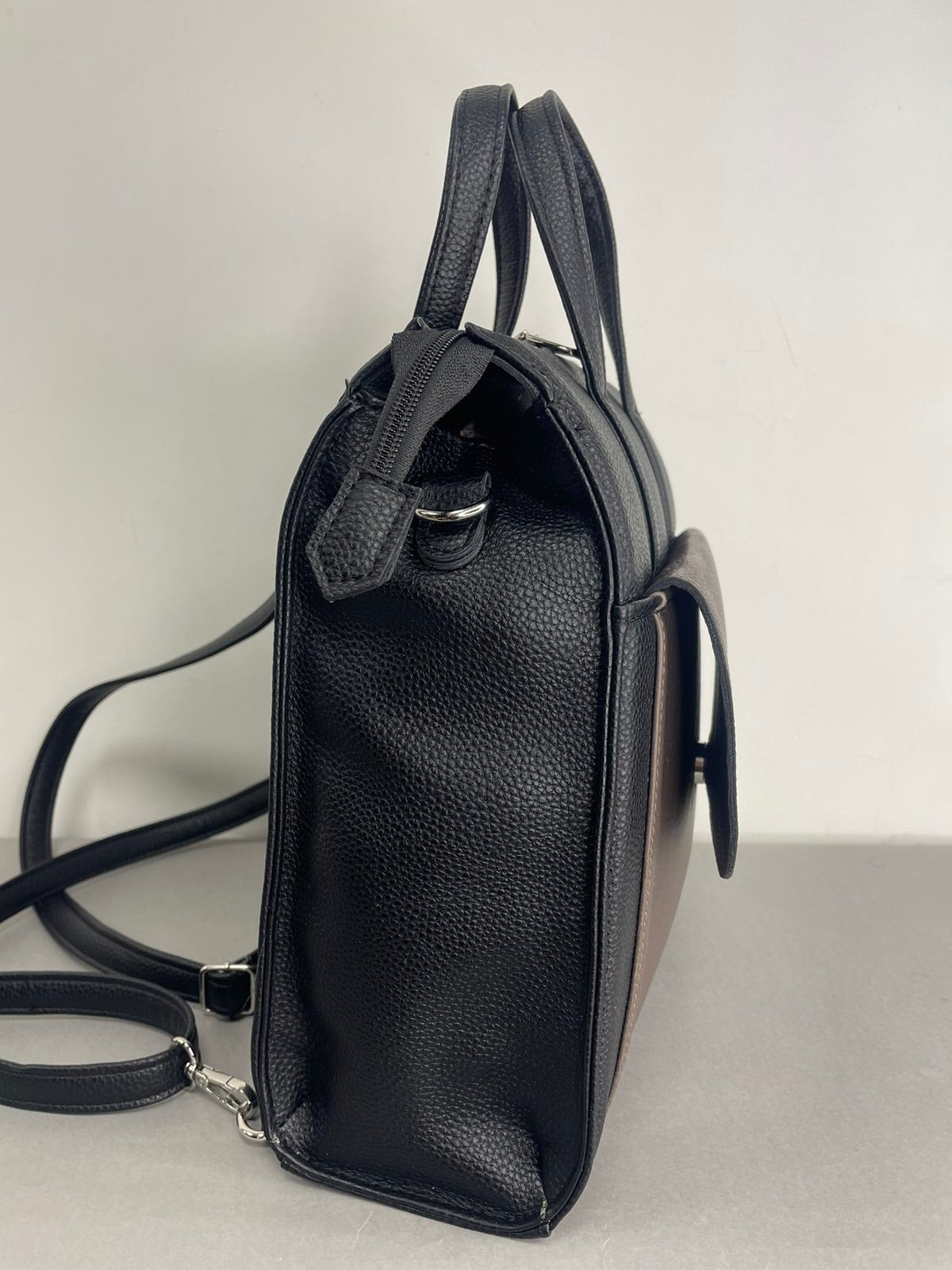 Negalite nuspresti rankinė ar kuprinė? Mes turime sprendimą - 2in1 kuprinė-rankinė. Stilinga moteriška kuprinė, turinti nusegamas rankenas, tad gali būti lengvai paverčiama į rankinę, bei dvi trumpas rankenėles nešiojimui rankoje.