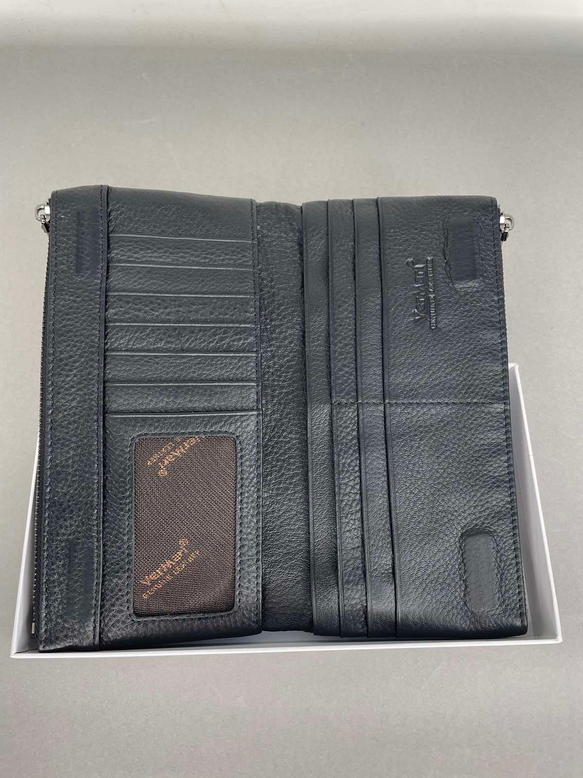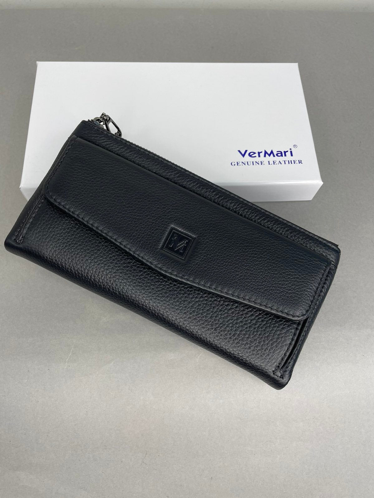 Natūralios odos moteriška VerMari piniginė. Piniginė talpina 13 kortelių, bei turi dvi užtrauktuku užsegamas kišenėles.