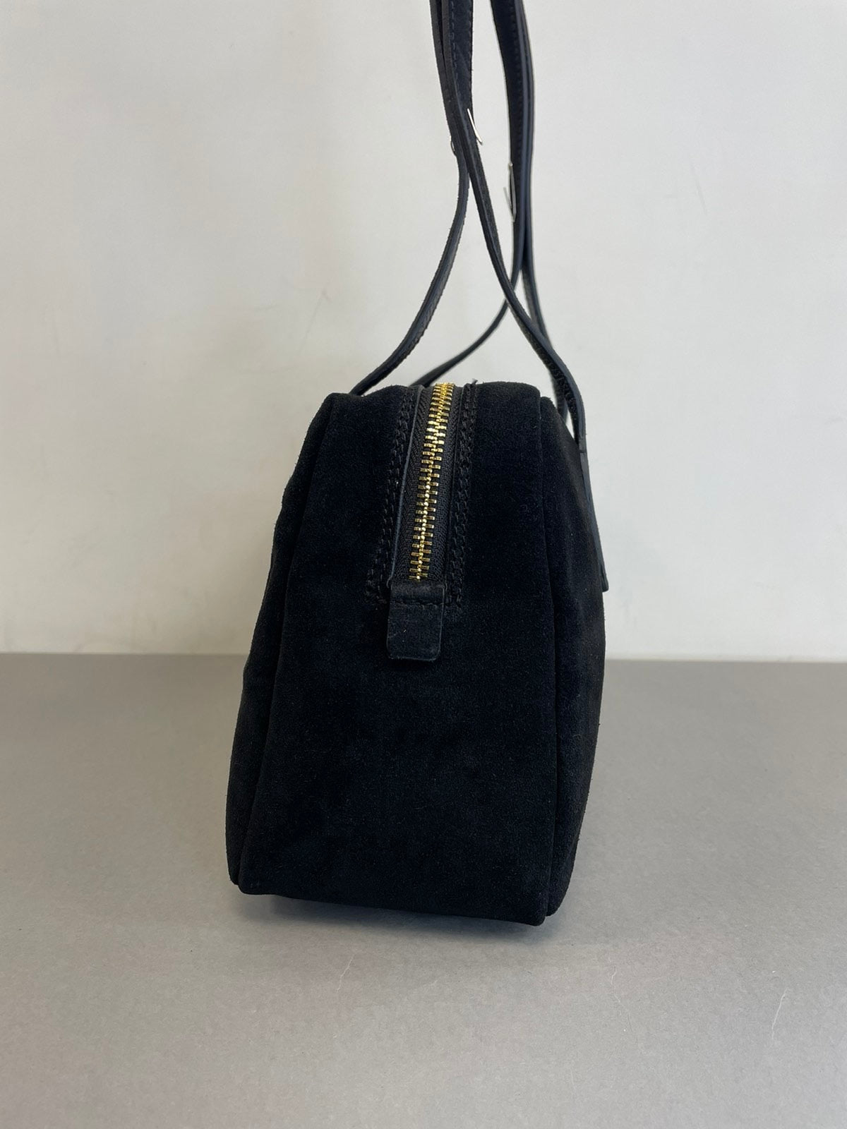 Natūralaus zomšo, juoda moteriška rankinė. Itališkos odinės rankinės pasižymi aukšta kokybe ir stilingu dizainu.