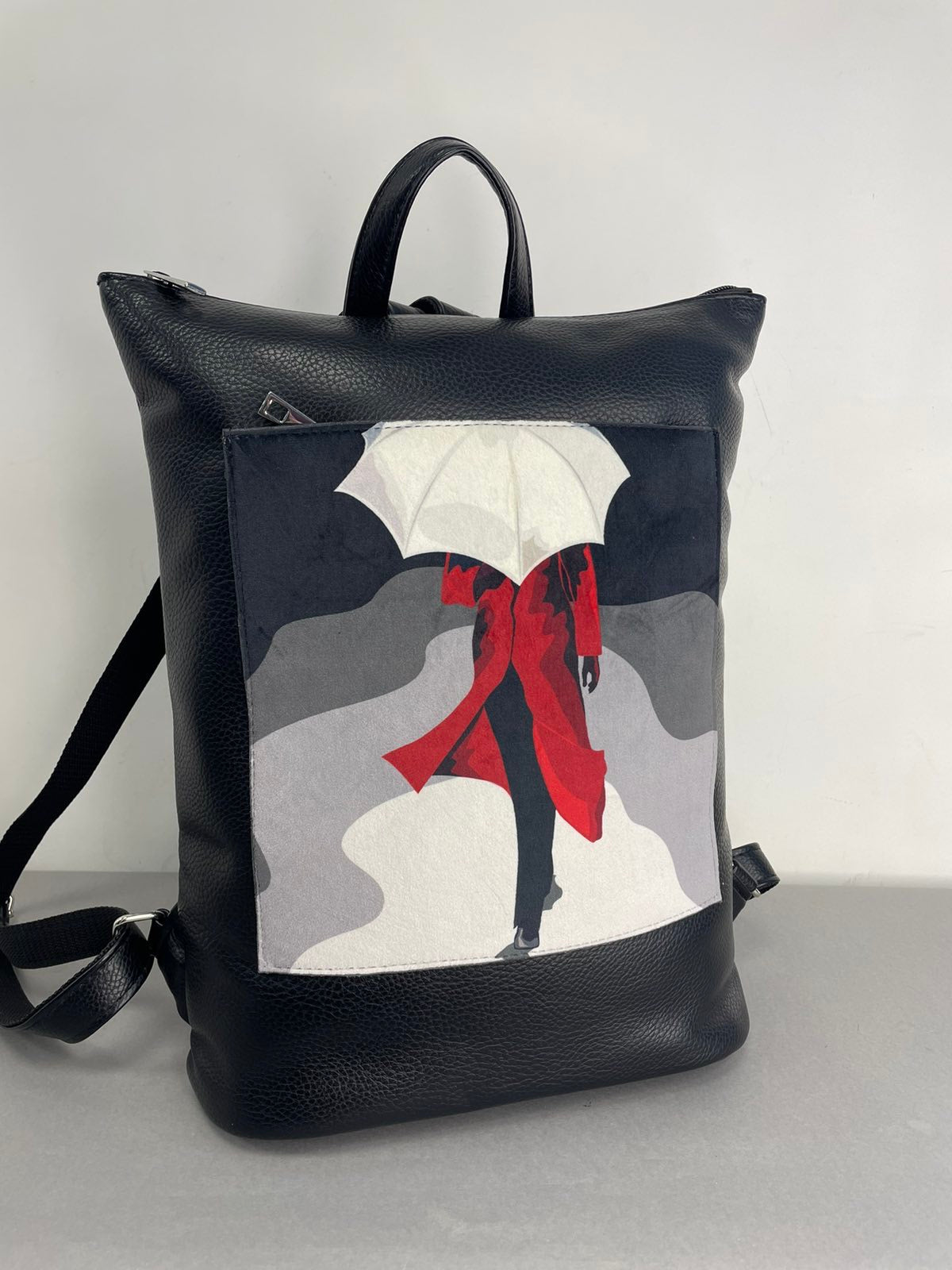 Lietuviška Sominta kuprinė moterims. Išskirtinė moteriška kuprinė su paveiksliuku, pagamintos iš eko odos, o priekyje esantis paveikslėlis - veliūrinis. Kuprinė lasvai talpina A4 fortmatą, viduje turi du skyrius, bei kišenėles.