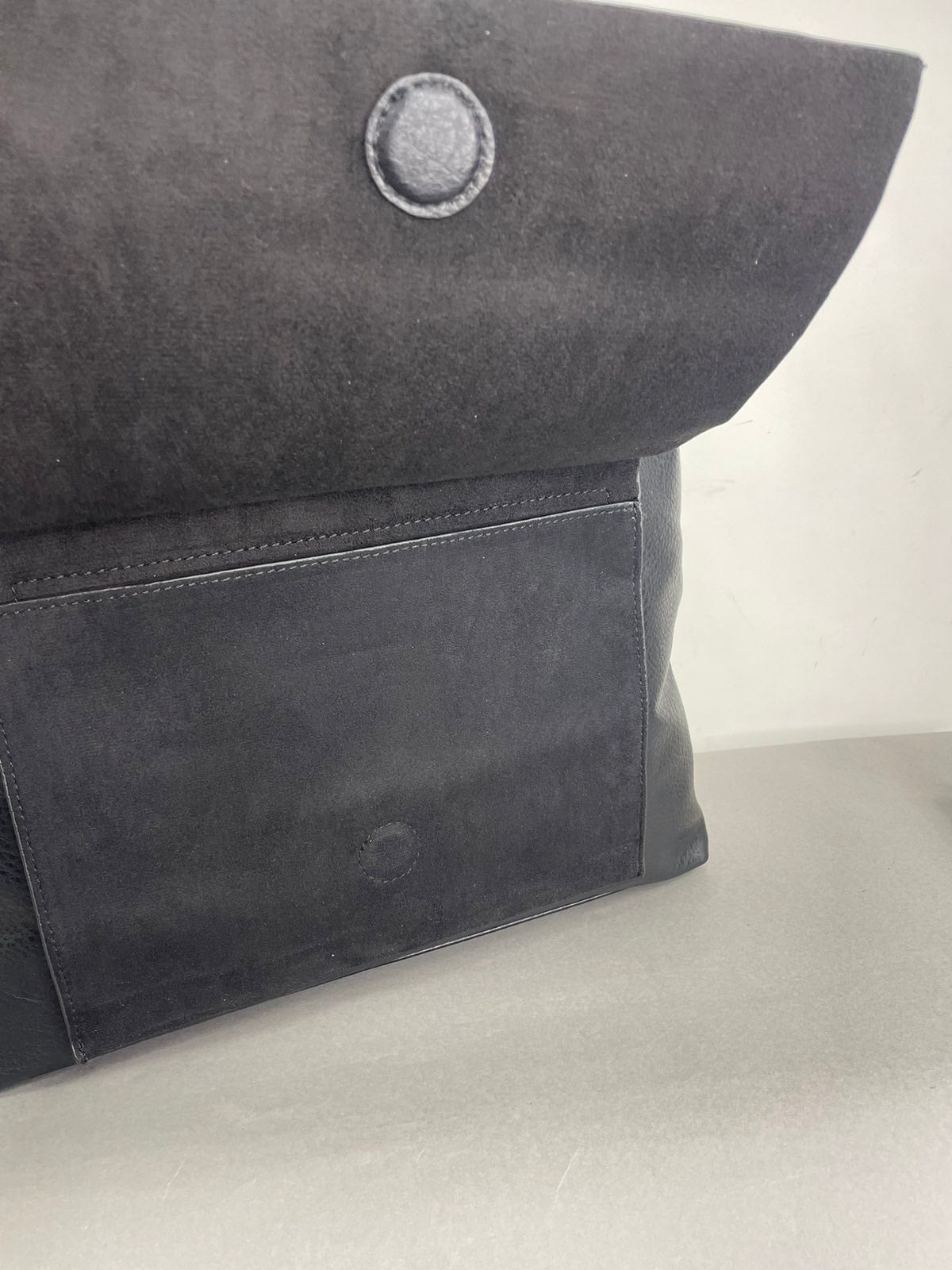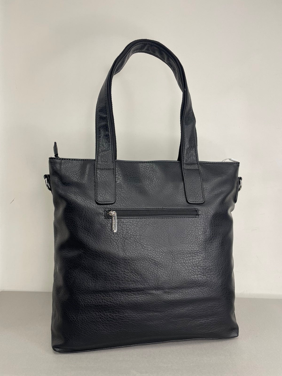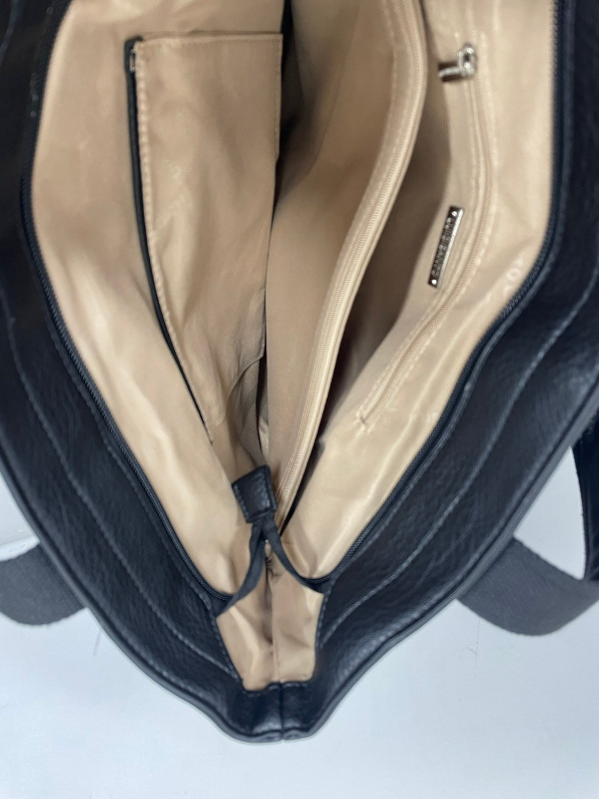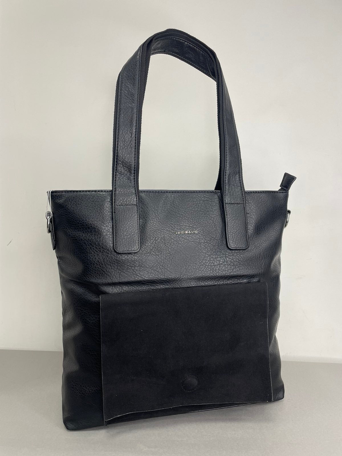 Moteriška Luigisanto rankinė, juodos spalvos, talpaus modelio. Rankinės viduje yra du skyriai, turi prisegamą reguliuojamo ilgio rankeną.