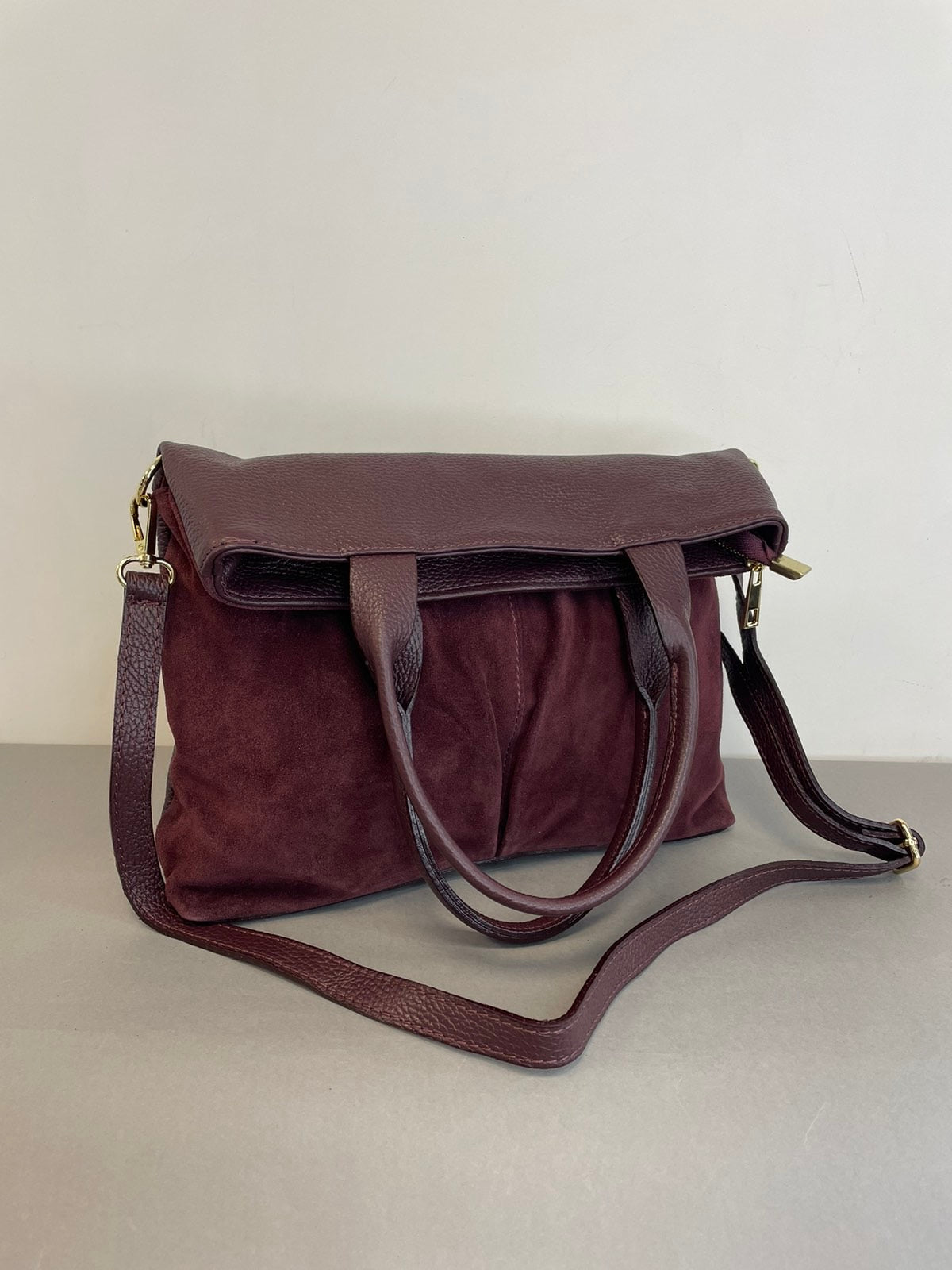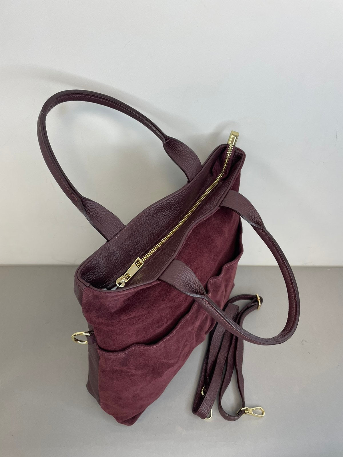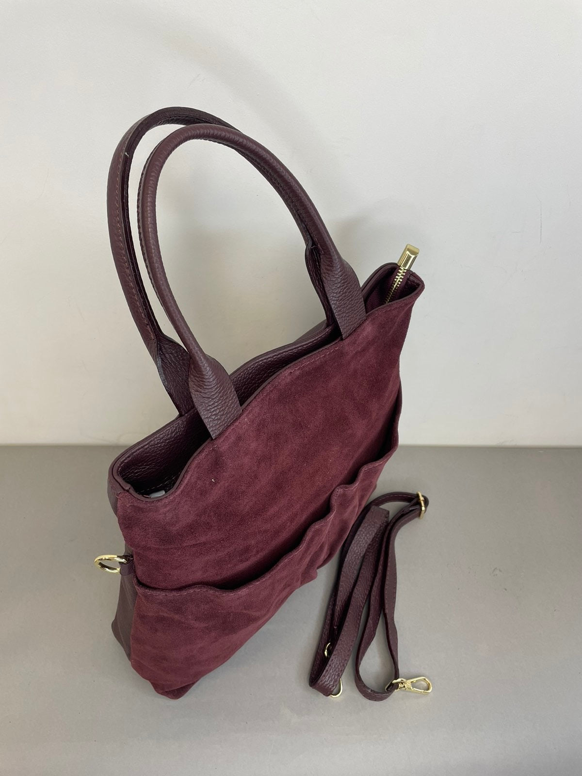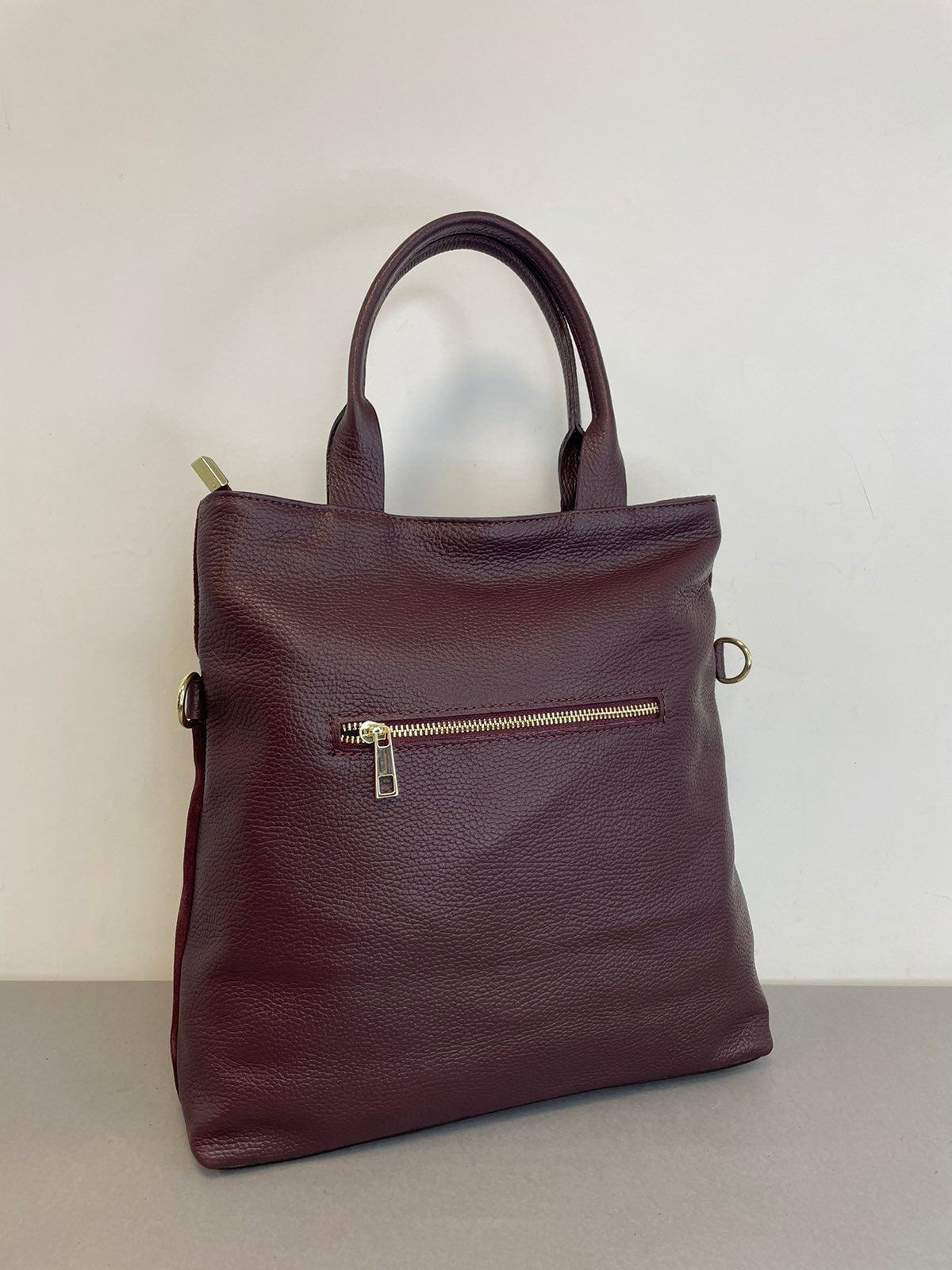 Natūralios verstos odos moteriška rankinė su dviem trumpom rankenom ir prisegamu reguliuojamo ilgio dirželiu. Itališkos odinės rankinės pasižymi aukšta kokybe ir stilingu dizainu.