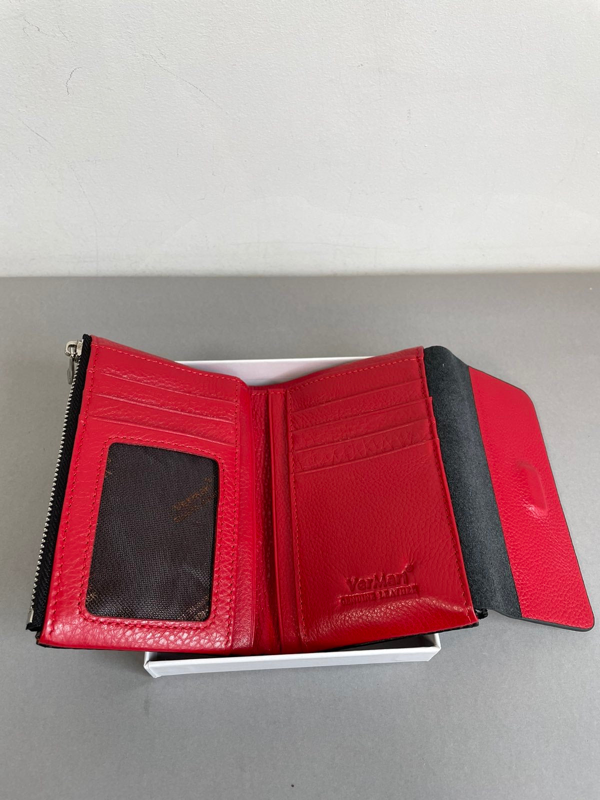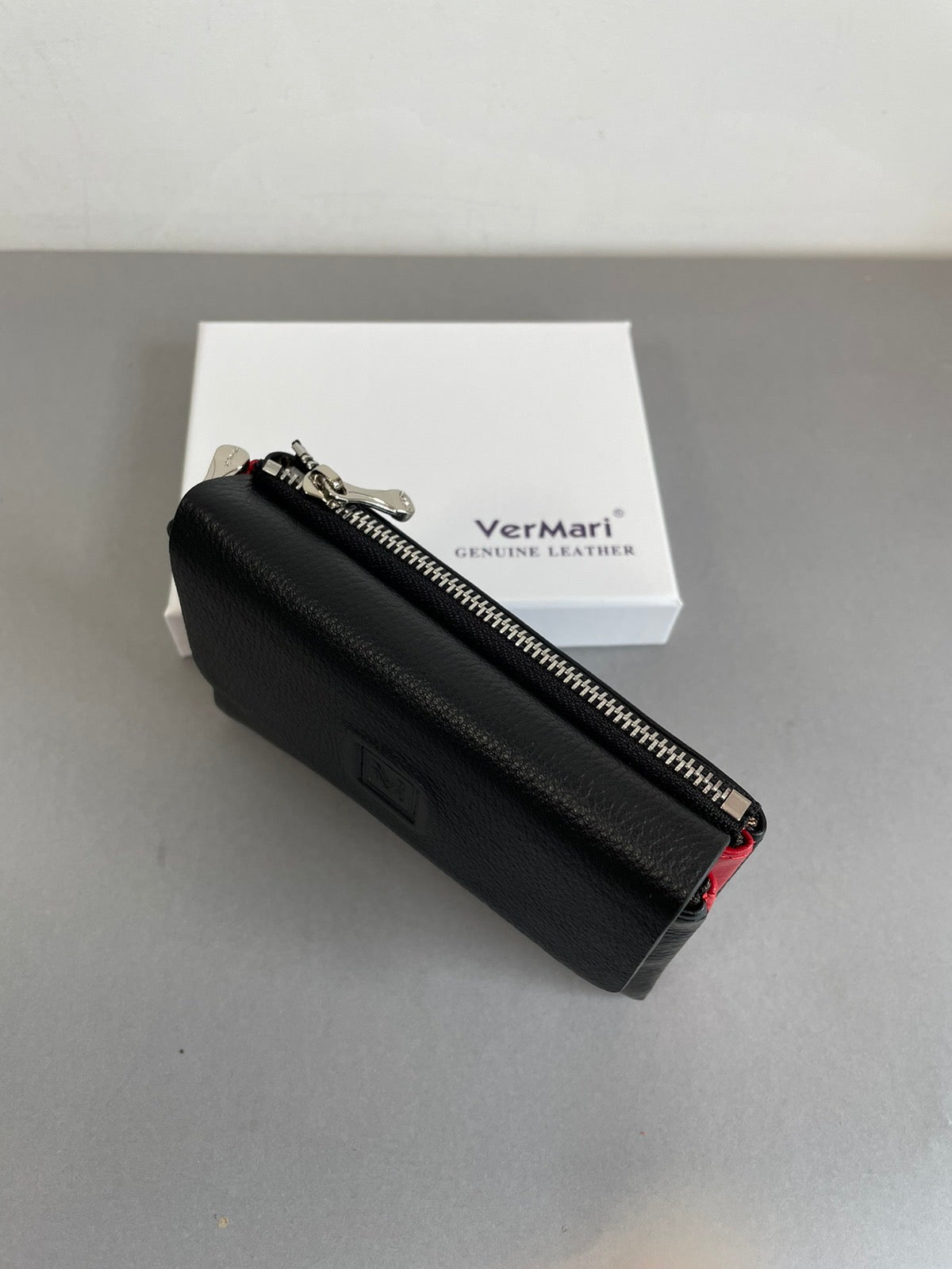 Natūralios odos, vidutinio dydžio VerMari piniginė moterims. Piniginė pagaminta iš kokybiškos, bei minkštos ir malonios laikyti rankoje natūralios odos. Piniginė talpina 7 korteles, turi skyrių kupiūroms ir du užtrauktuku užsegamas kišenėles. Piniginė uždaroma tvirtai prisispaudžiančiu magnetu.