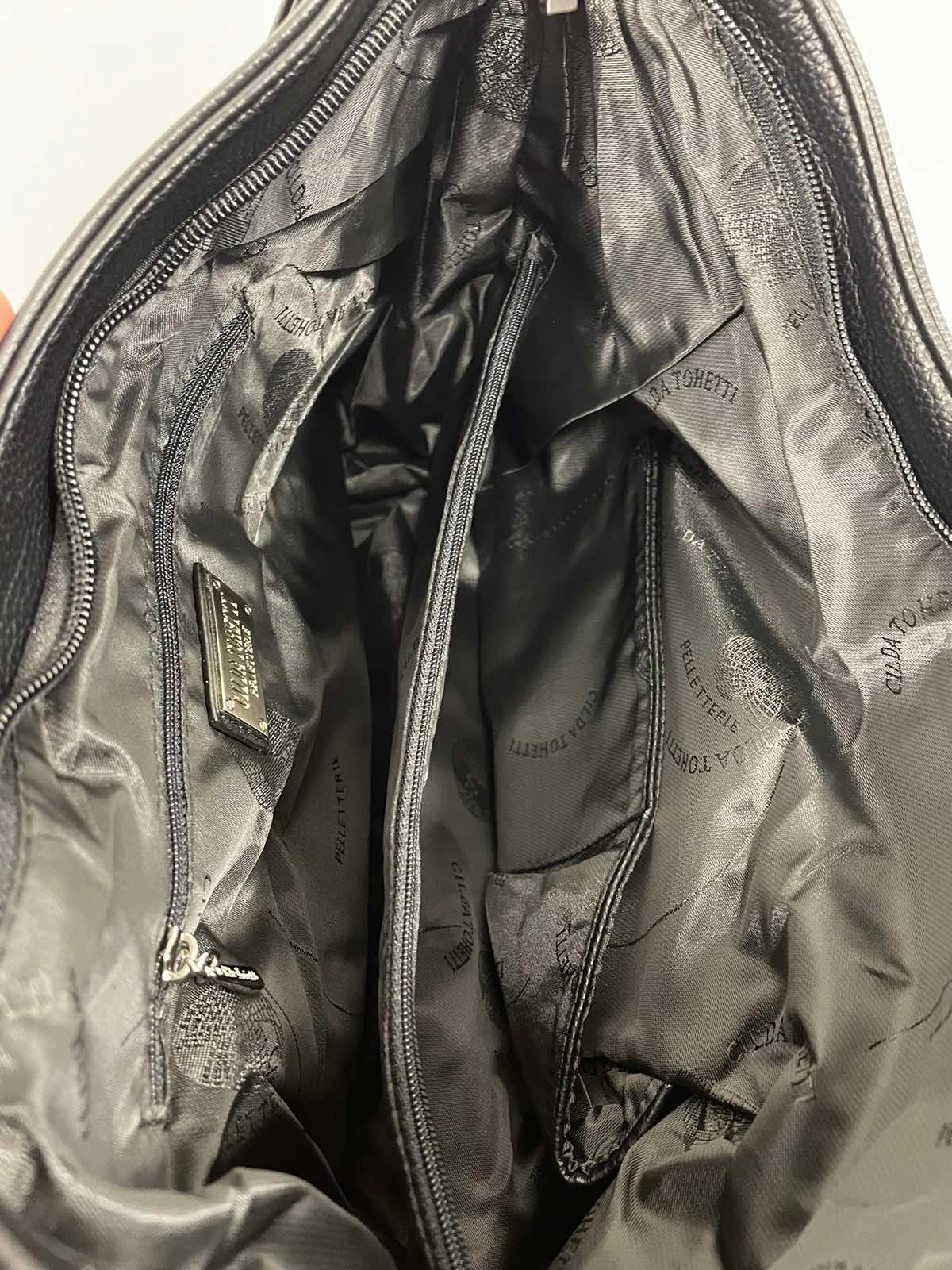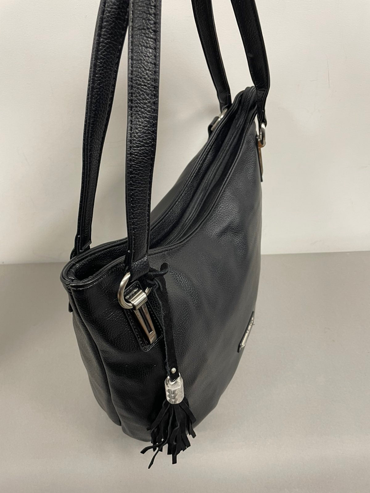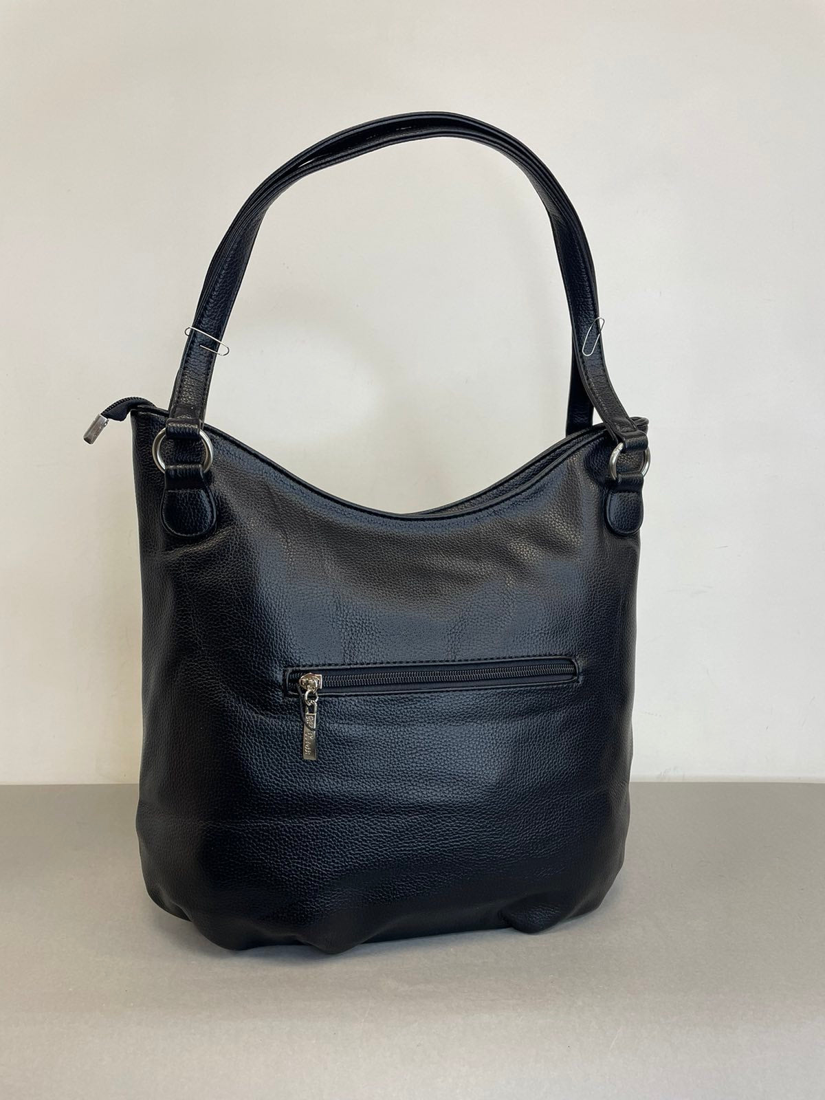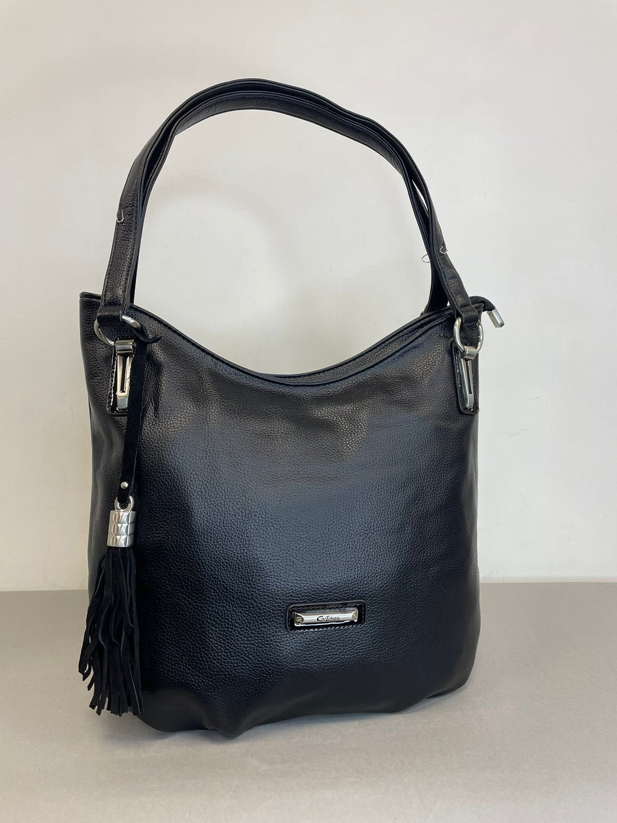 Juodos spalvos moteriška Gilda Tohetti rankinė. Rankinė turi dvi ilgas rankenas nešiojimui ant peties.