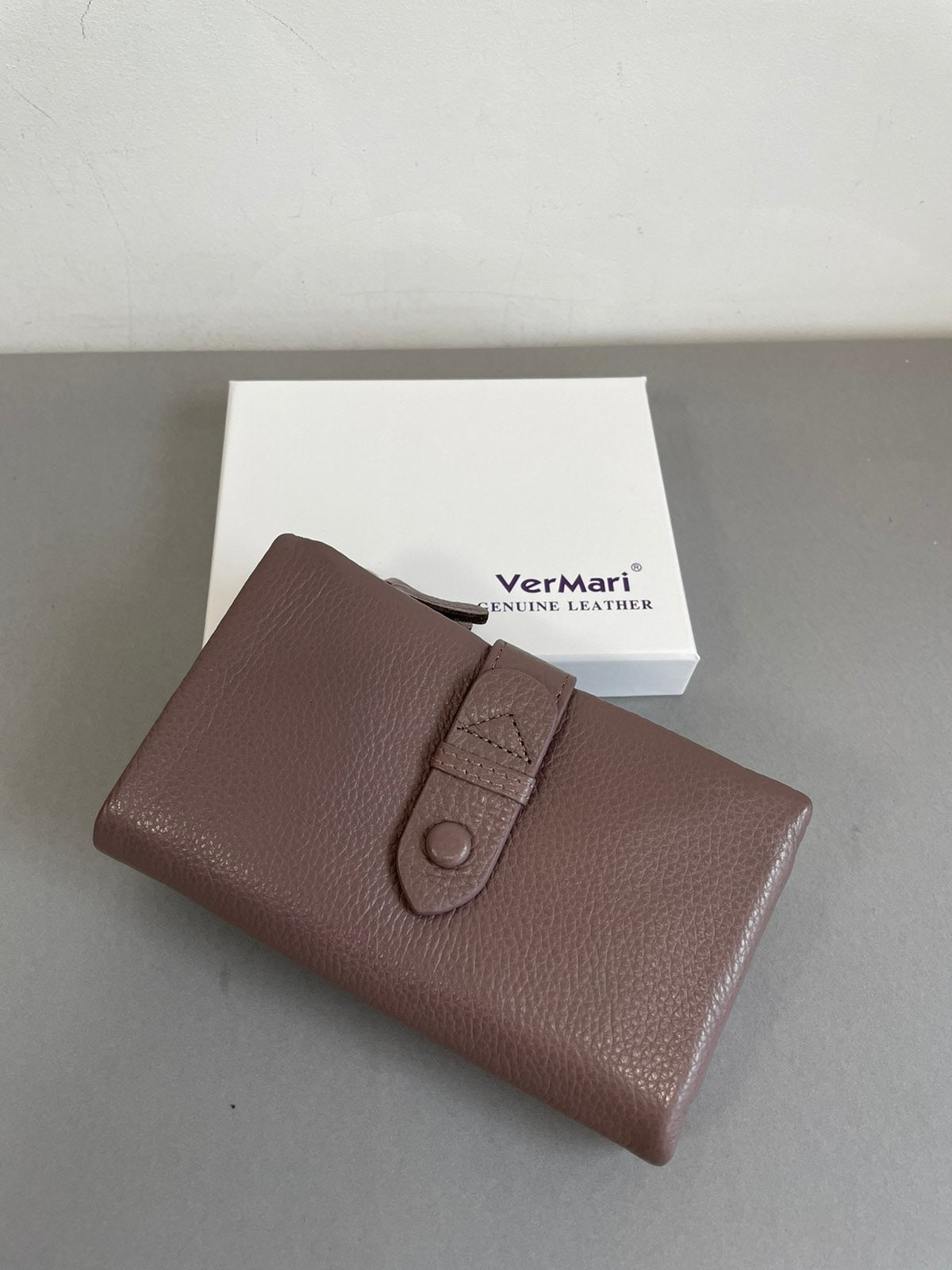 Moteriška natūralios odos VerMari piniginė. Ieškančioms nedidelės, bet talpios piniginės - šis modelis būtent toks. Piniginėje yra 19 skyrelių kortelėms, skyrius kupiūroms, bei kišenėlės su užtrauktuku.
