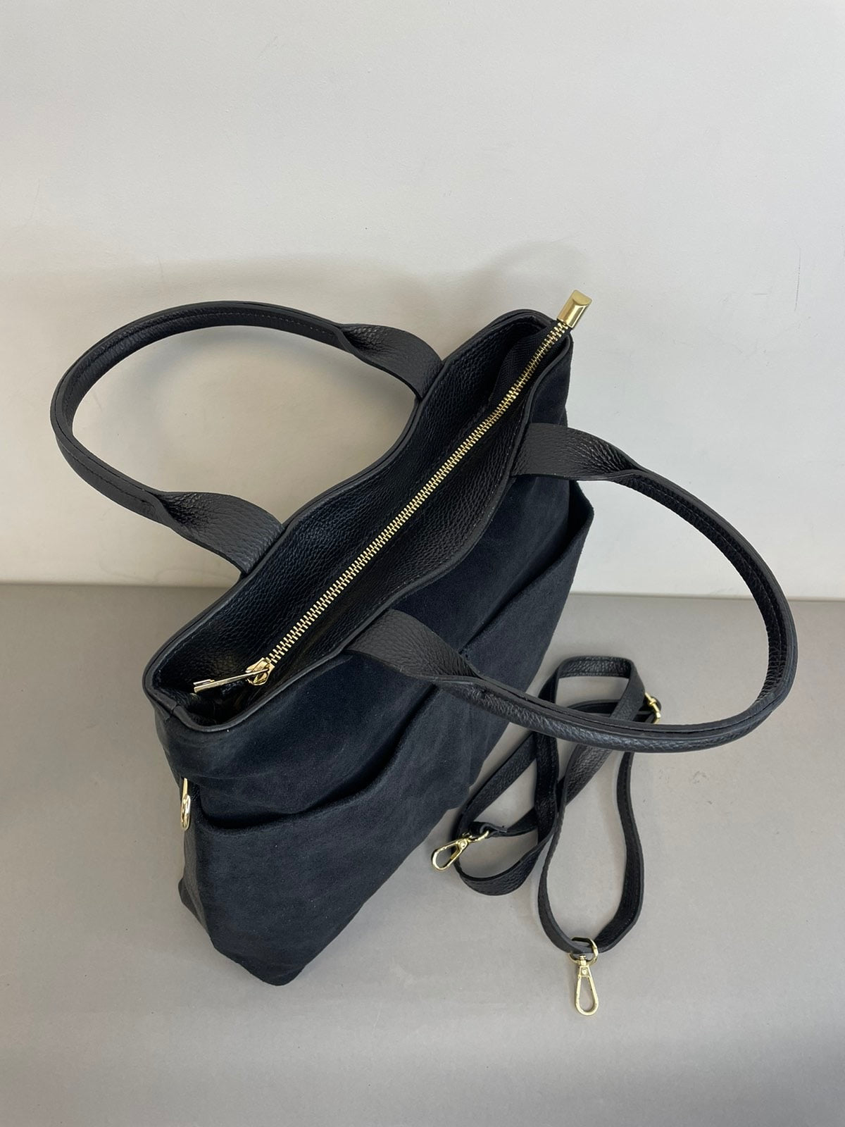 Natūralios verstos odos moteriška rankinė su dviem trumpom rankenom ir prisegamu reguliuojamo ilgio dirželiu. Itališkos odinės rankinės pasižymi aukšta kokybe ir stilingu dizainu.