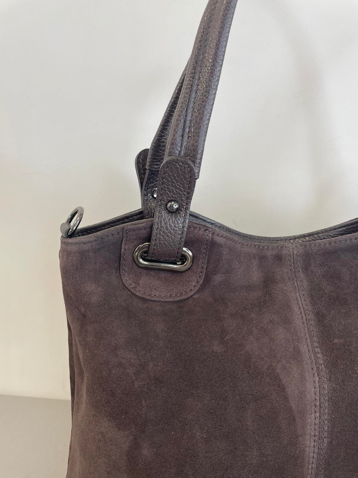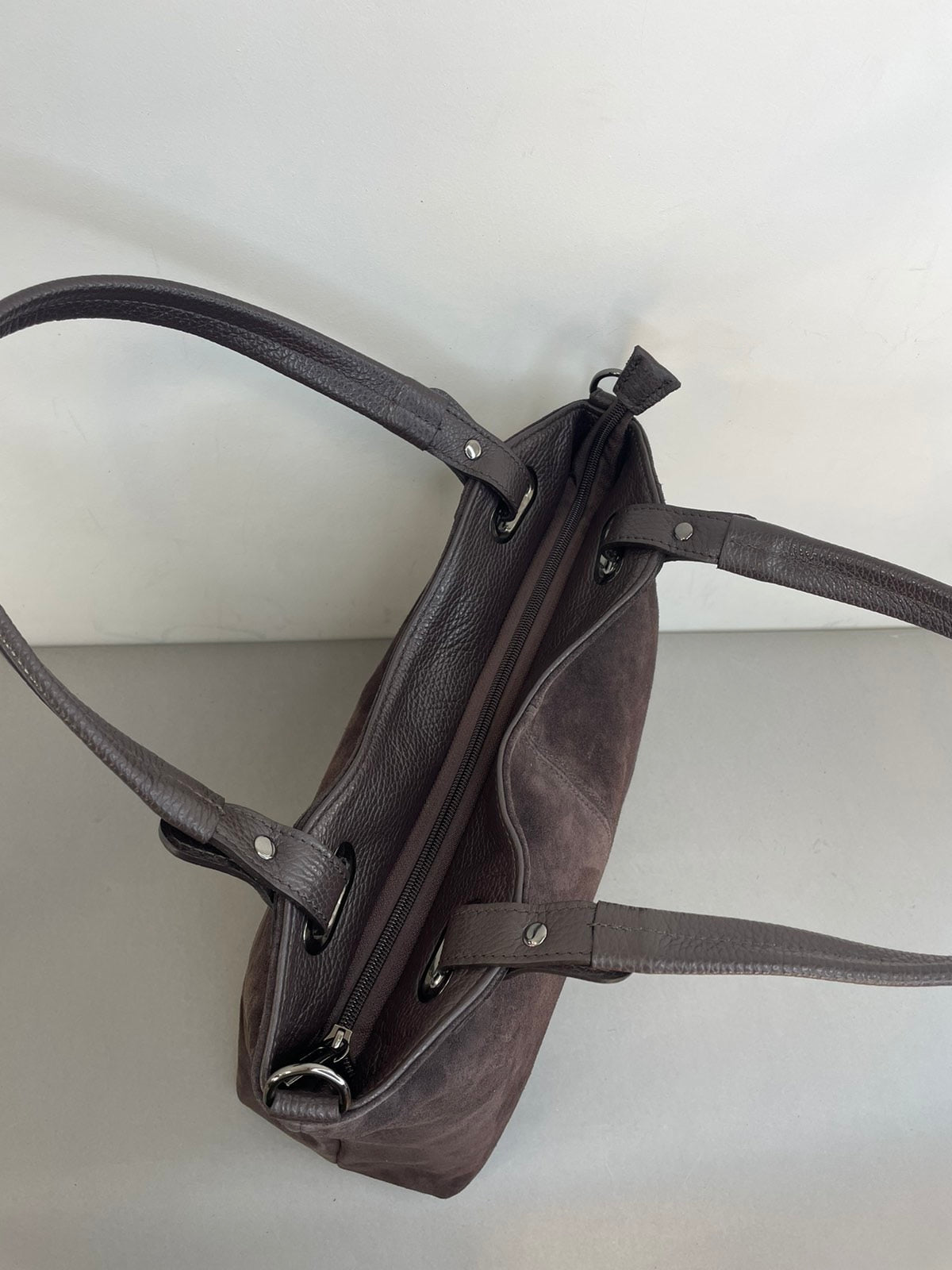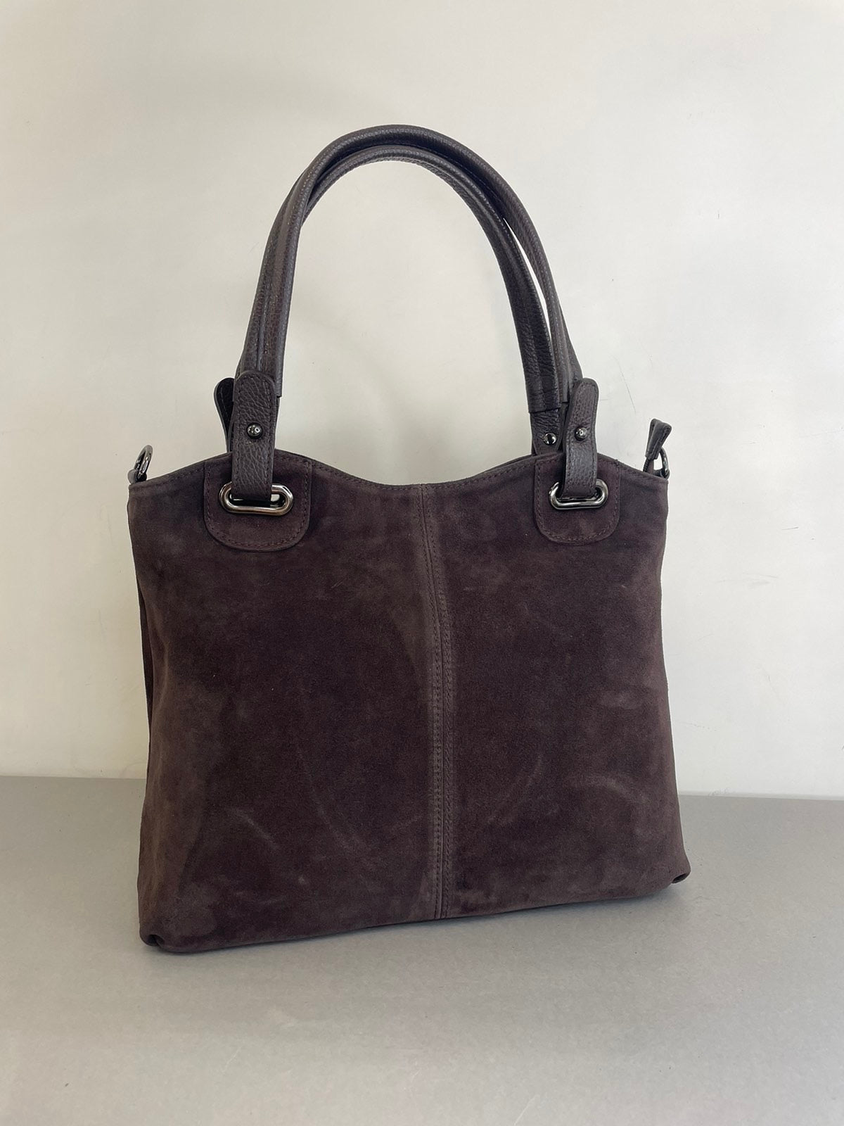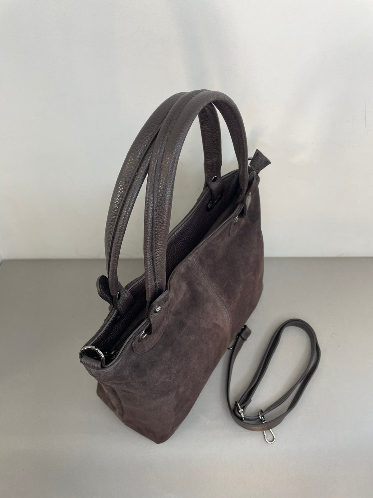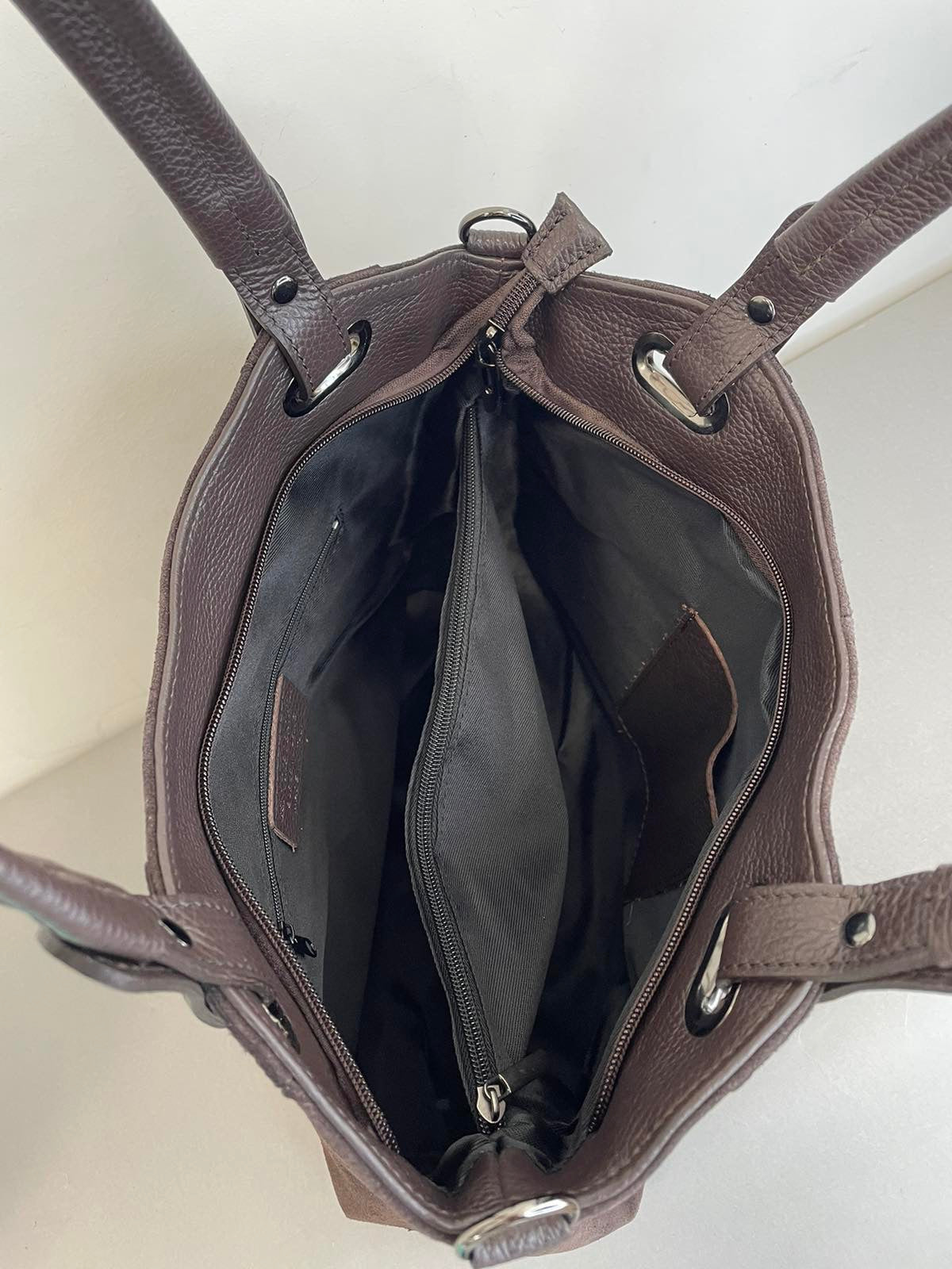 Natūralios verstos odos moteriška rankinė su dviem vidutinio ilgio rankenomis ir prisegamu, reguliuojamo ilgio dirželiu dirželiu. Itališkos odinės rankinės pasižymi aukšta kokybe ir stilingu dizainu.