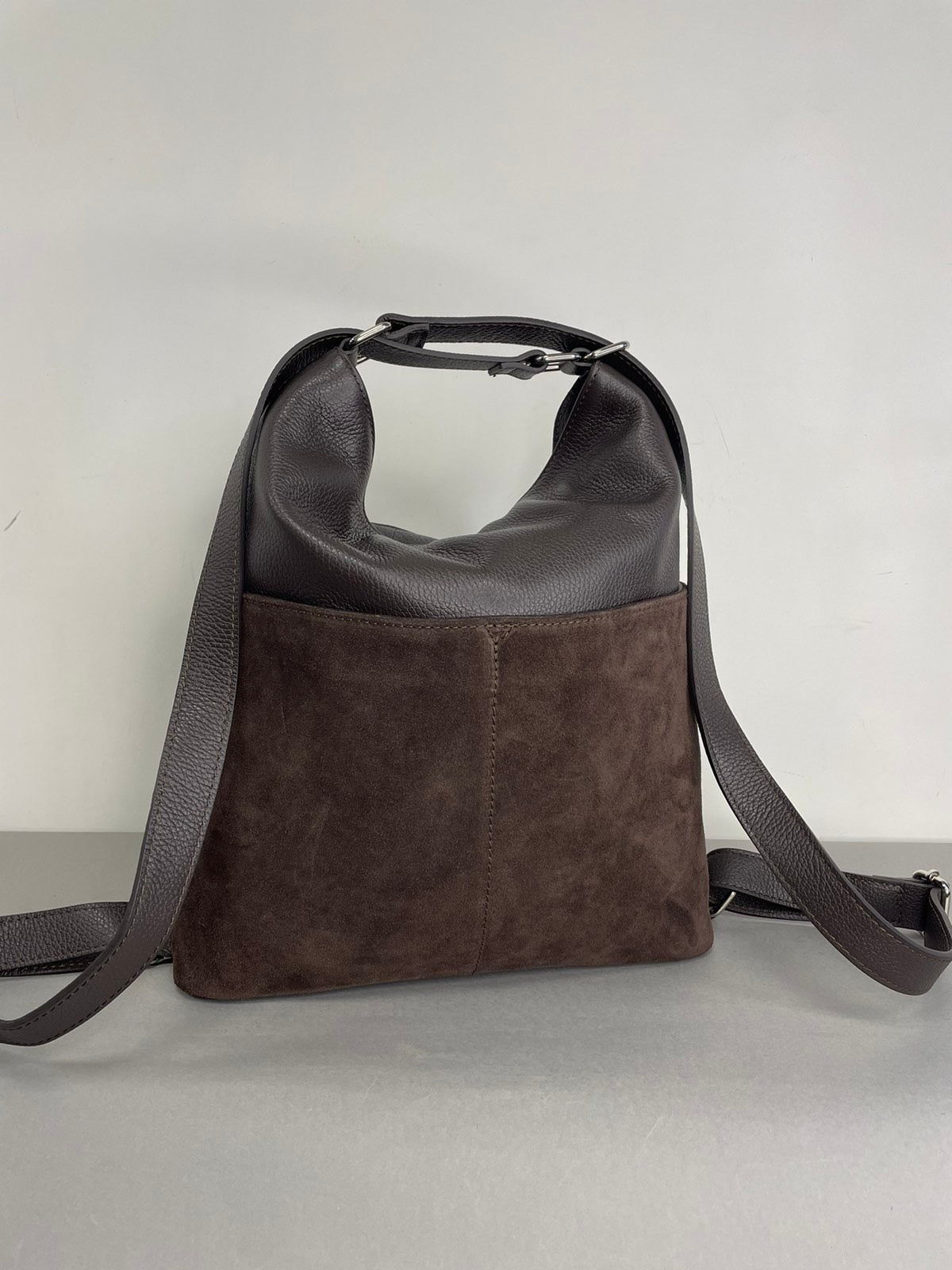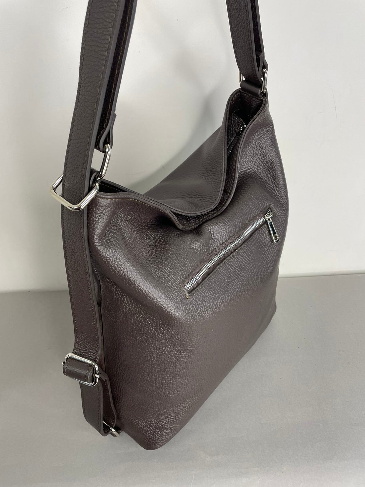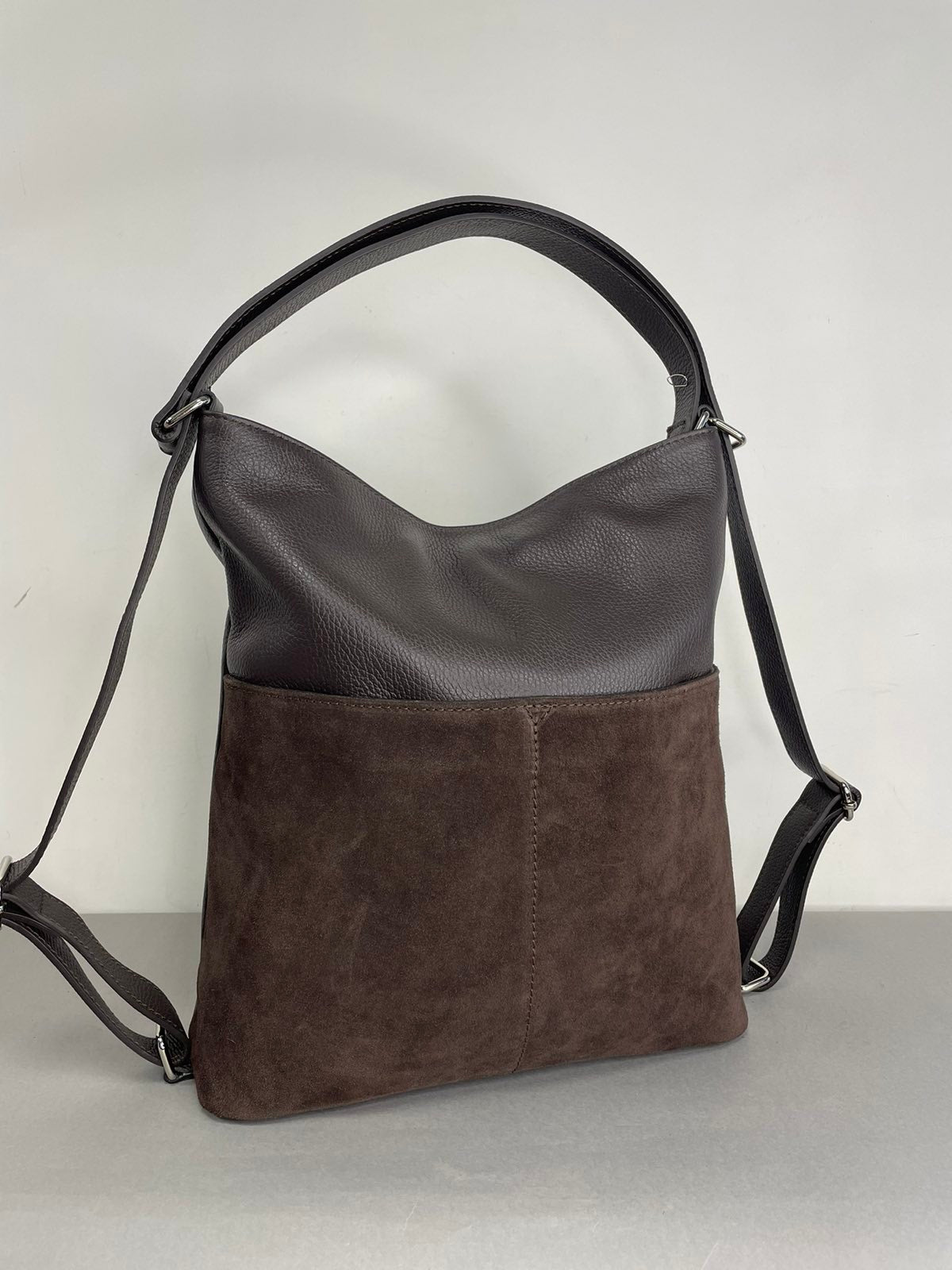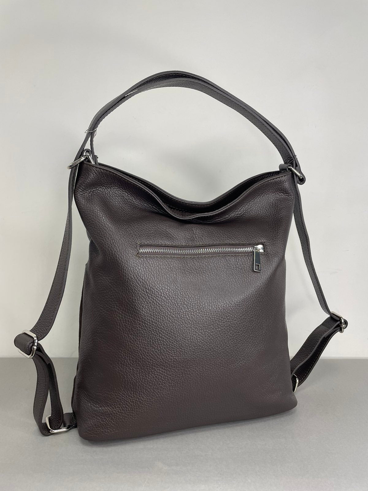 Negalite apsispręati renkantis tarp naujos rankinės ar kuprinės? Siūlome, Jums, natūralios odos moterišką rankinę, kuri vienu judesiu, patraukus rankenas, paverčiama į kuprinę.