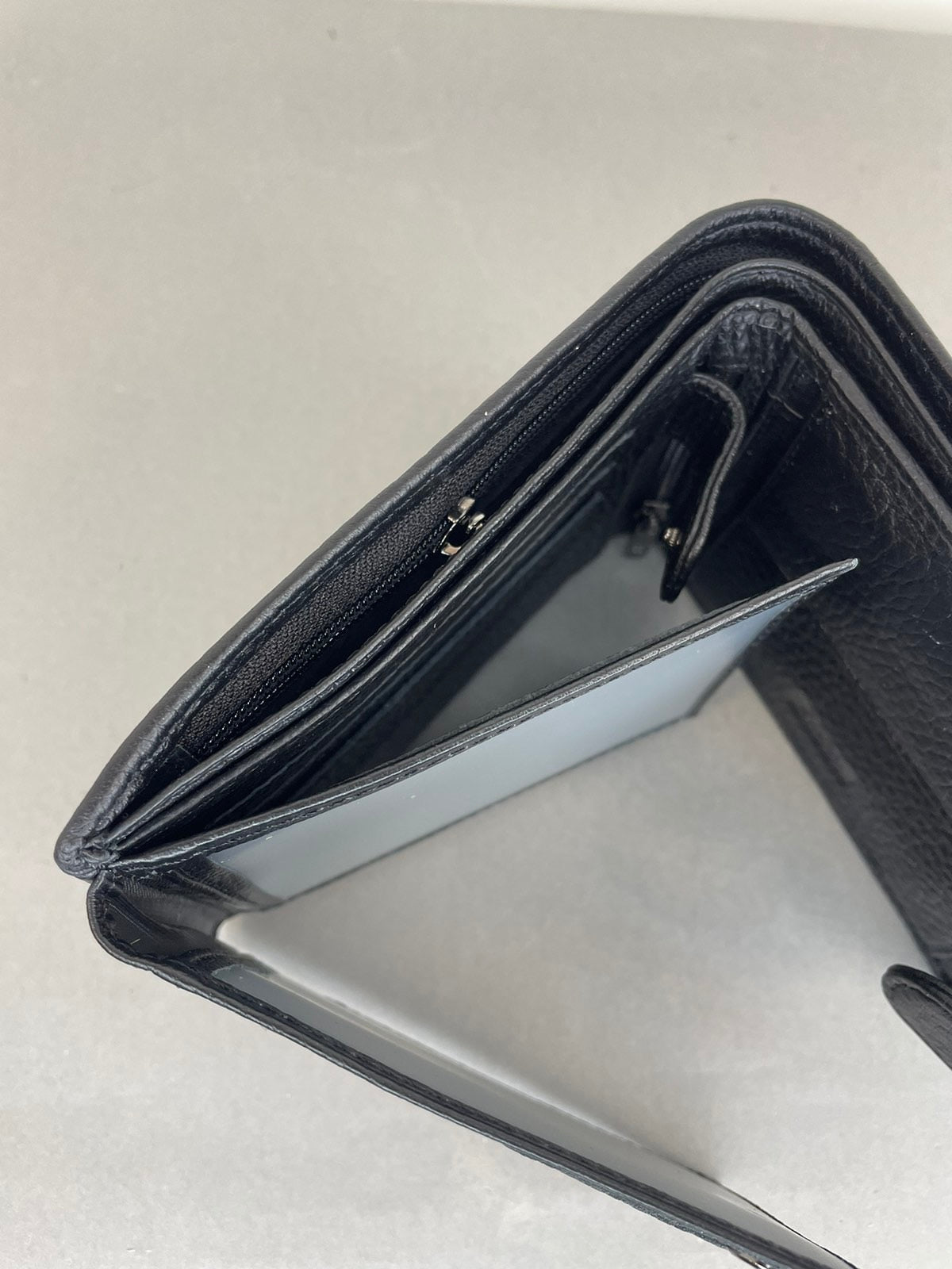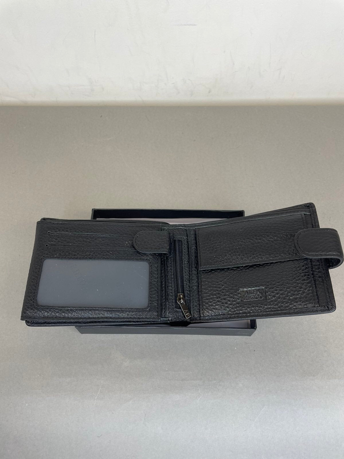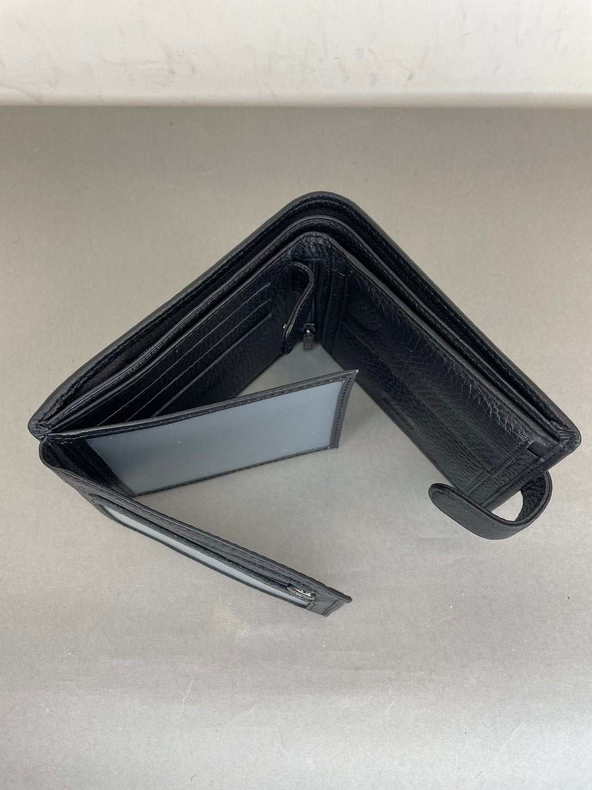 Vyriška natūralios odos piniginė Alfa Ricco su užsegimu. Piniginės oda minkšta ir maloni laikyti rankoje.