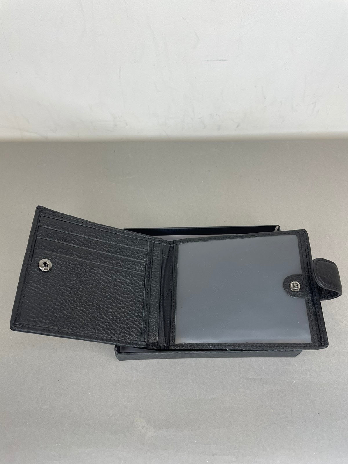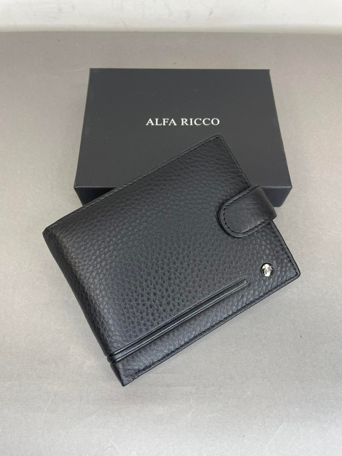Klasikinio modelio, natūralios odos Alfa Ricco vyriška piniginė su užsegimu. Piniginės oda minkšta ir maloni laikyti rankoje.