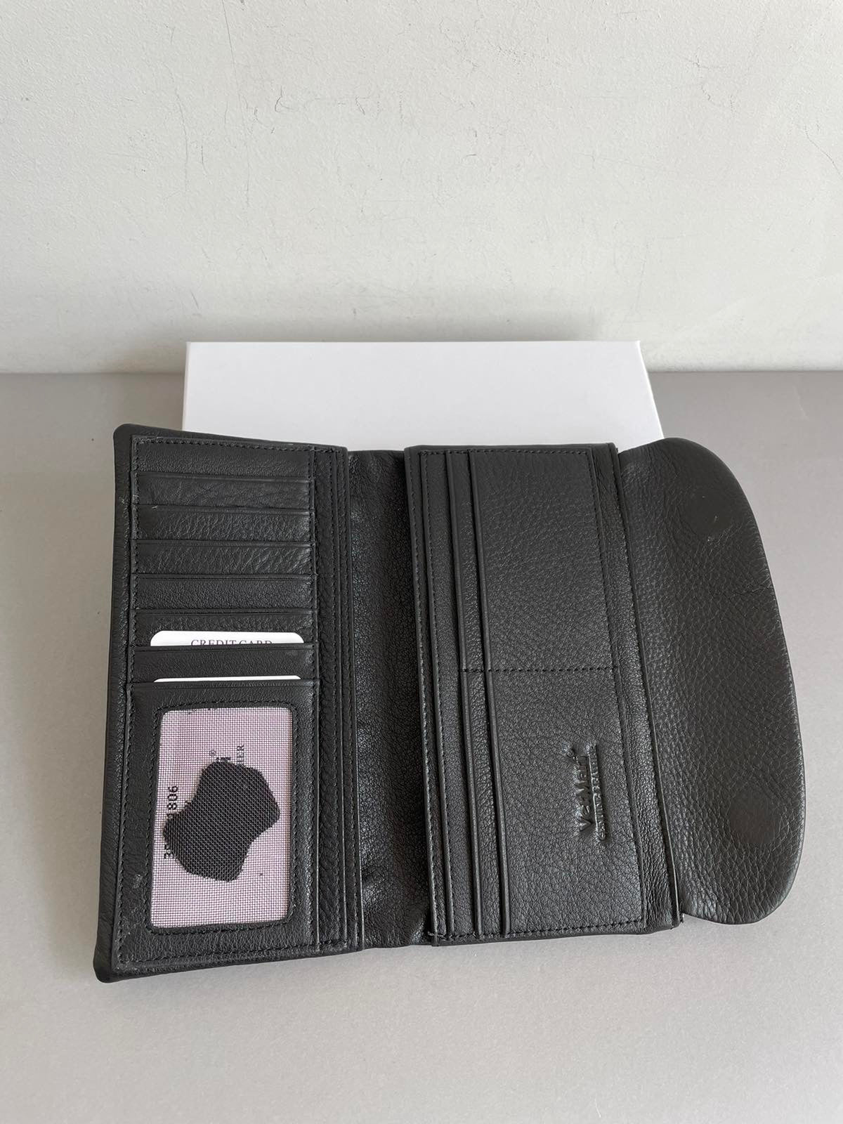 Patogi ir kokybiška natūralios odos moteriška piniginė. Piniginės užmetimas pritvirtinamas megnetu, piniginė talpina 11 kortelių ir turi vieną užtrauktuku užsegamą skyrelį.