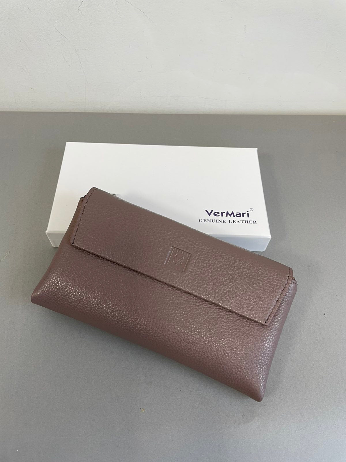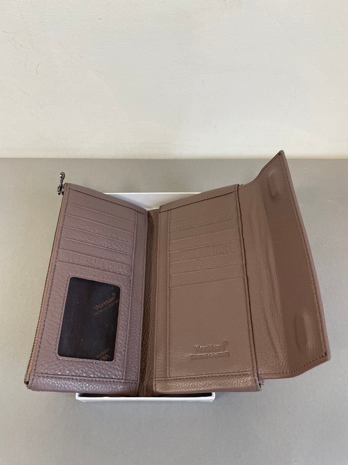 Patogi ir kokybiška, natūralios odos VerMari moteriška piniginė. Piniginės užmetimas pritvirtinamas megnetu, plačiai ir patogiai atsidarantis vidus talpina 13 kortelių, bei turi du užtrauktuku užsegamus skyrelius.