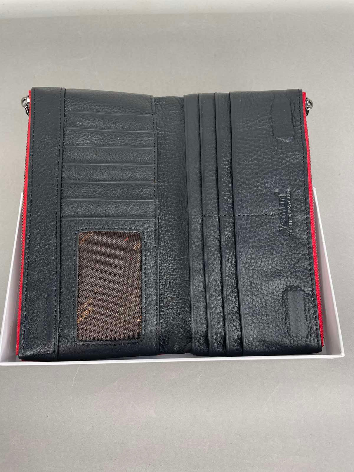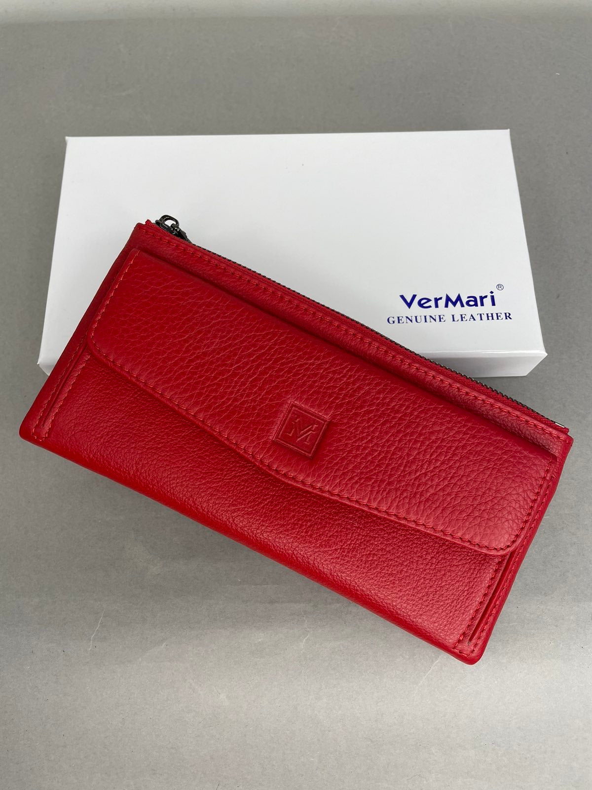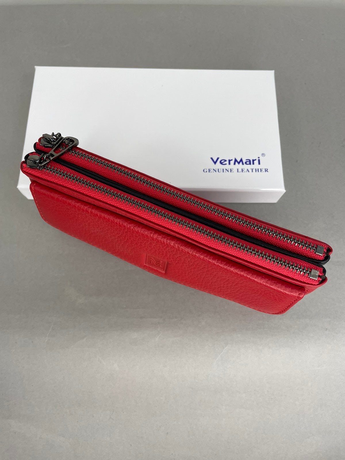 Natūralios odos moteriška VerMari piniginė. Piniginė talpina 13 kortelių, bei turi dvi užtrauktuku užsegamas kišenėles.