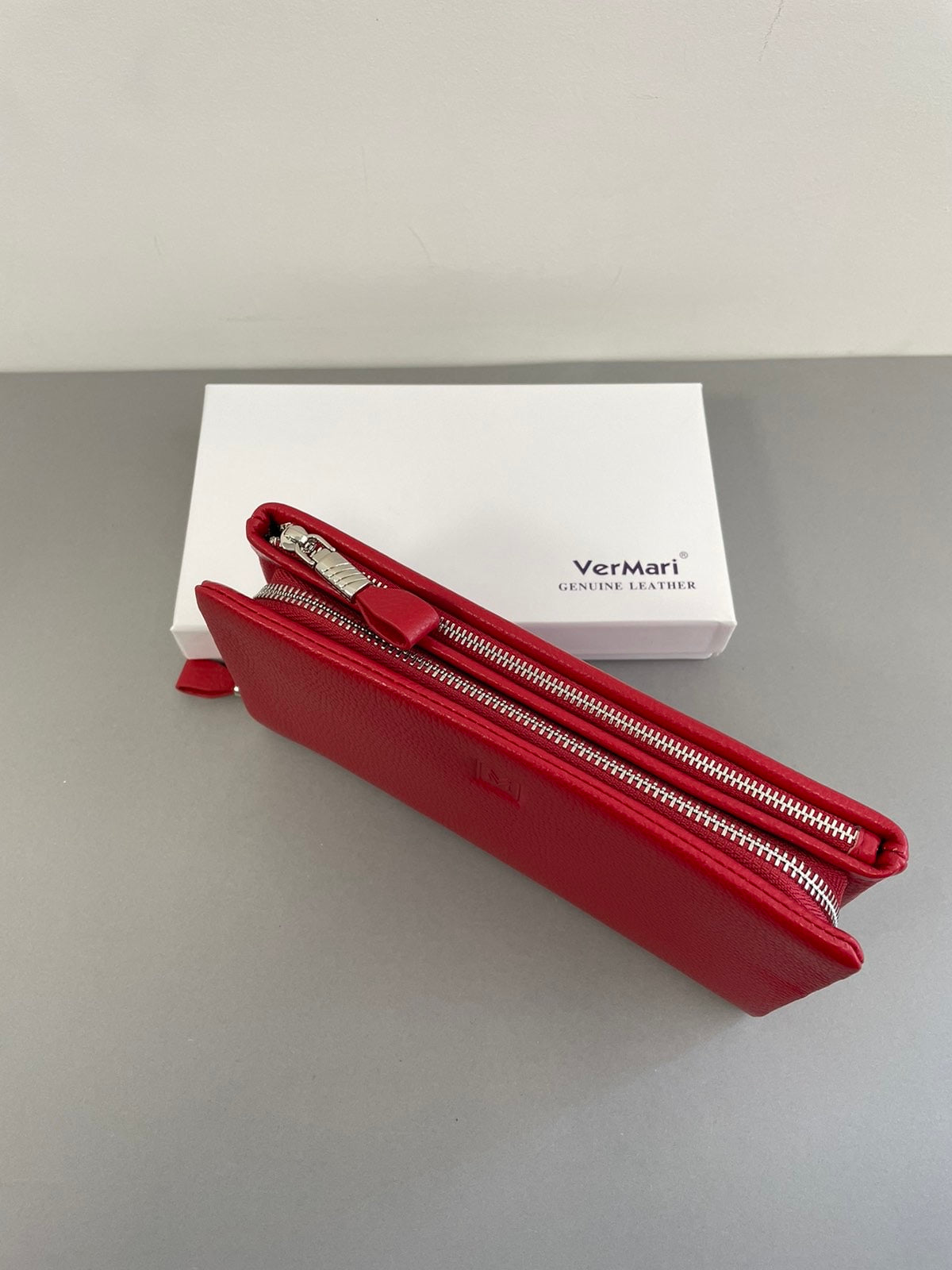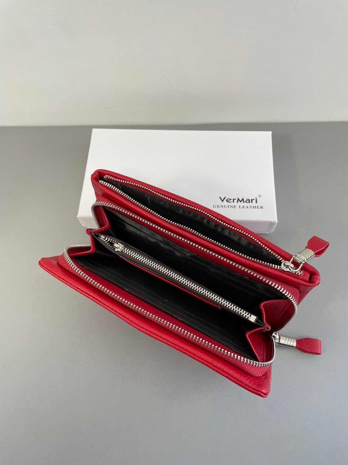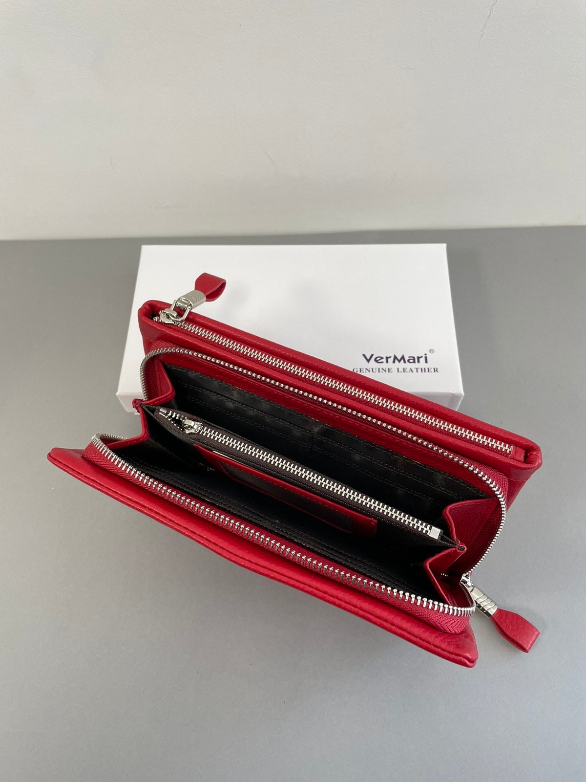 Stilinga ir kokybiška odinė VerMari piniginė su rankenėle - dar patogesniam nešiojimui. Šios piniginės pasižymi itin minkšta, malonia laikyti rankoje natūralia oda. Piniginė turi du užtrauktuku užsegamus skyrius, viename iš jų dar vieną kišenėlę su užtrauktuku bei skyrius kupiūroms ir kortelėms.