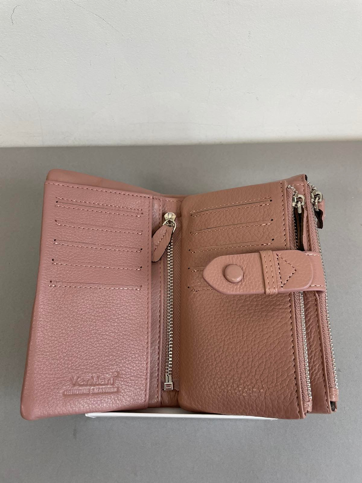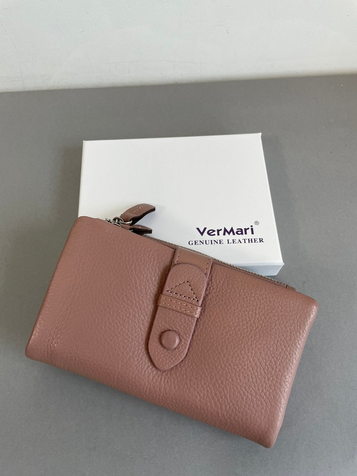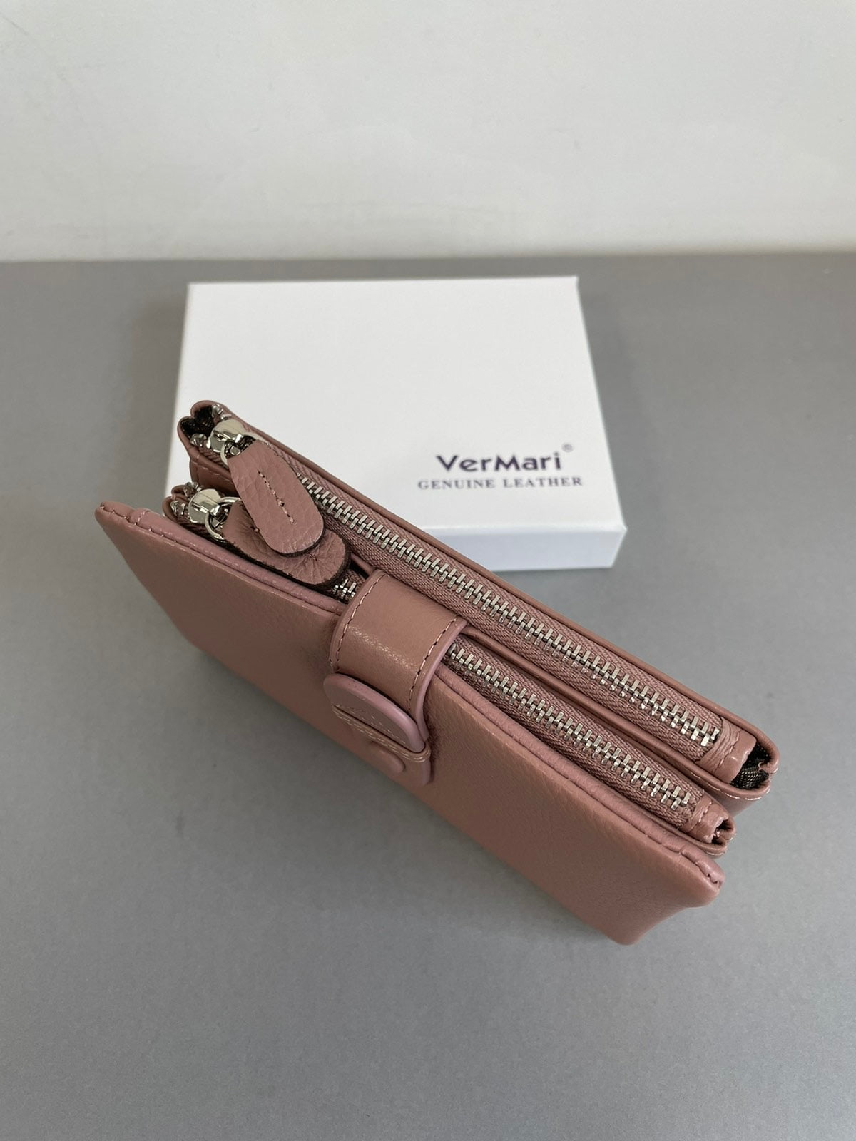 Moteriška natūralios odos VerMari piniginė. Ieškančioms nedidelės, bet talpios piniginės - šis modelis būtent toks. Piniginėje yra 19 skyrelių kortelėms, skyrius kupiūroms, bei kišenėlės su užtrauktuku.