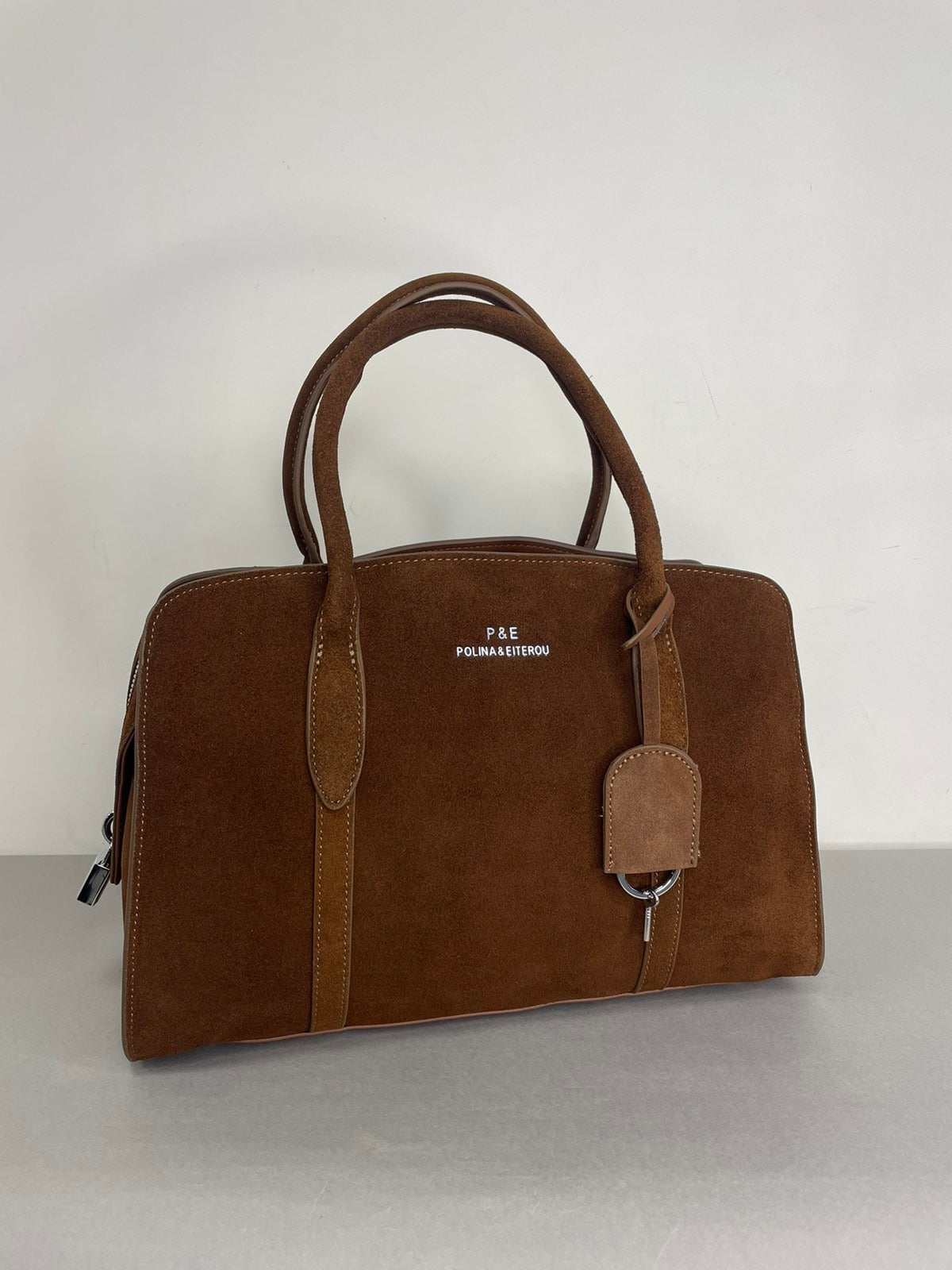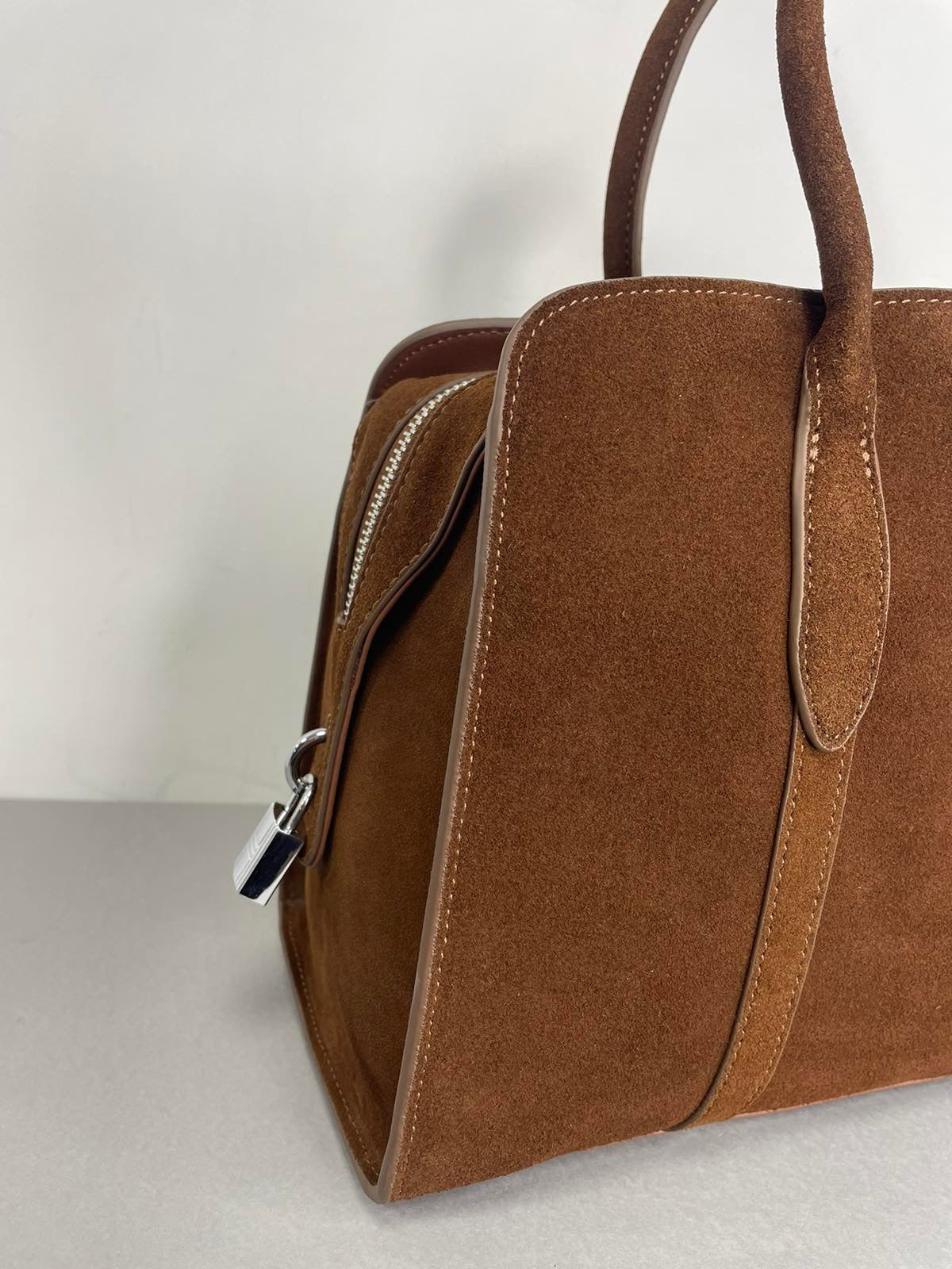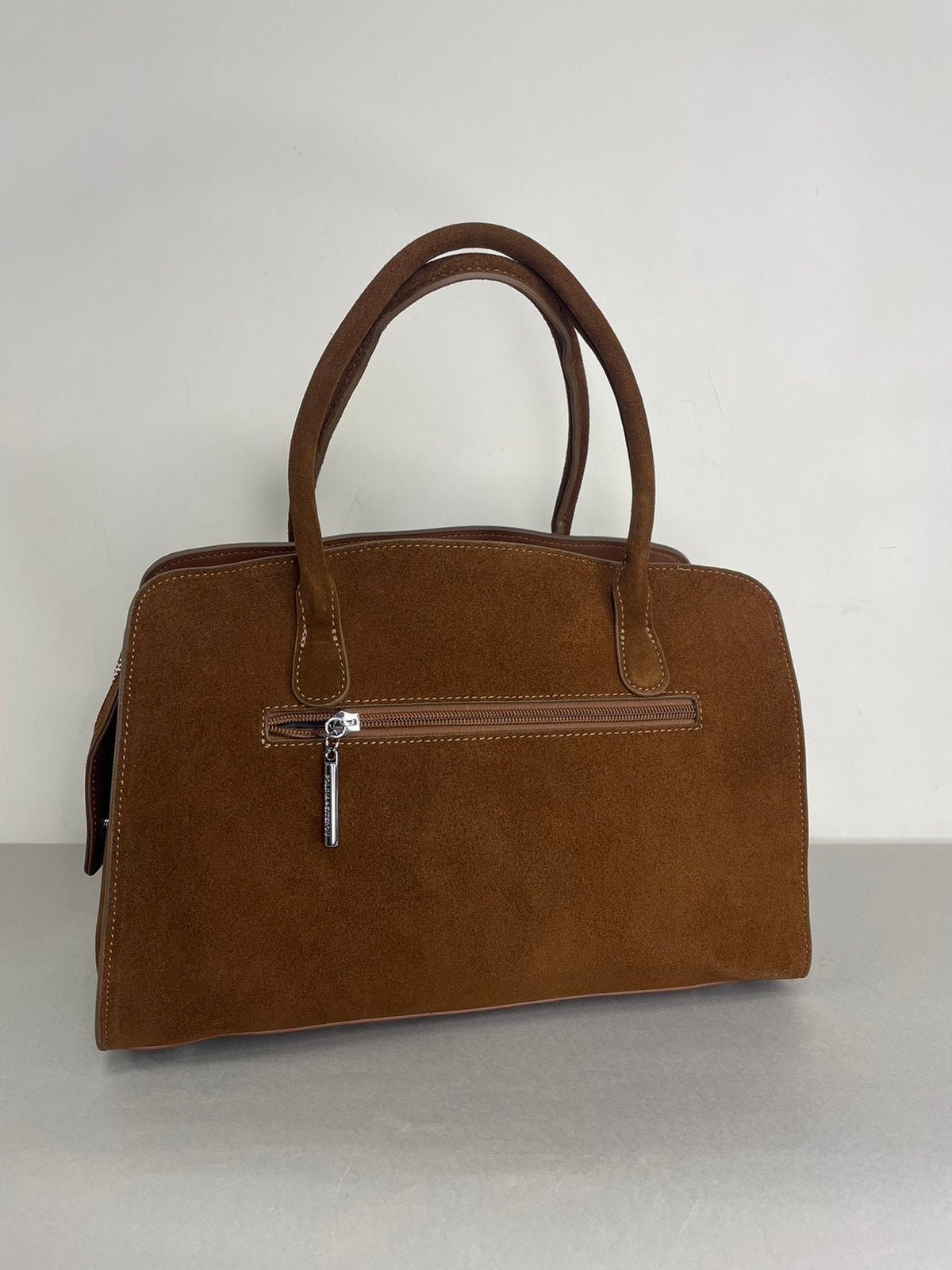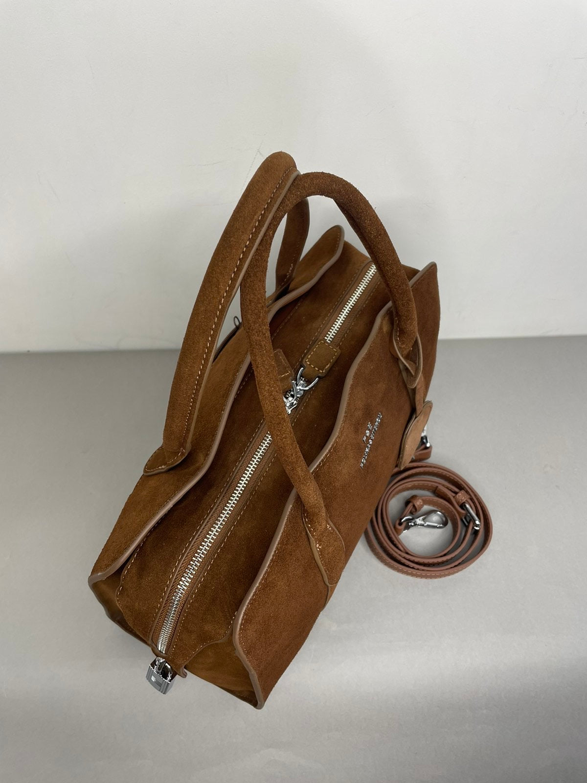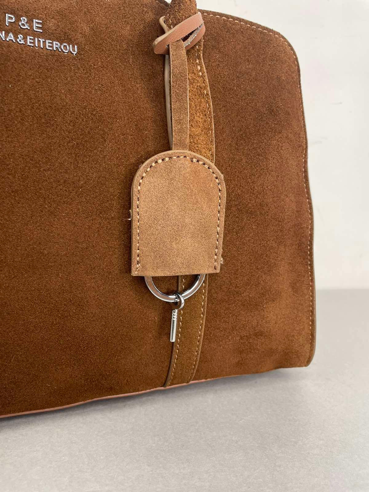 Ruda, natūralaus zomšo moteriška rankinė,