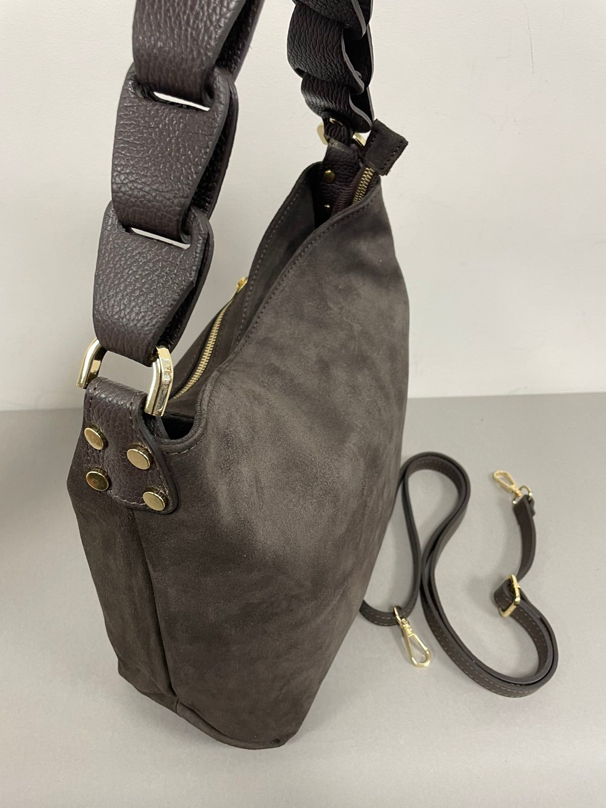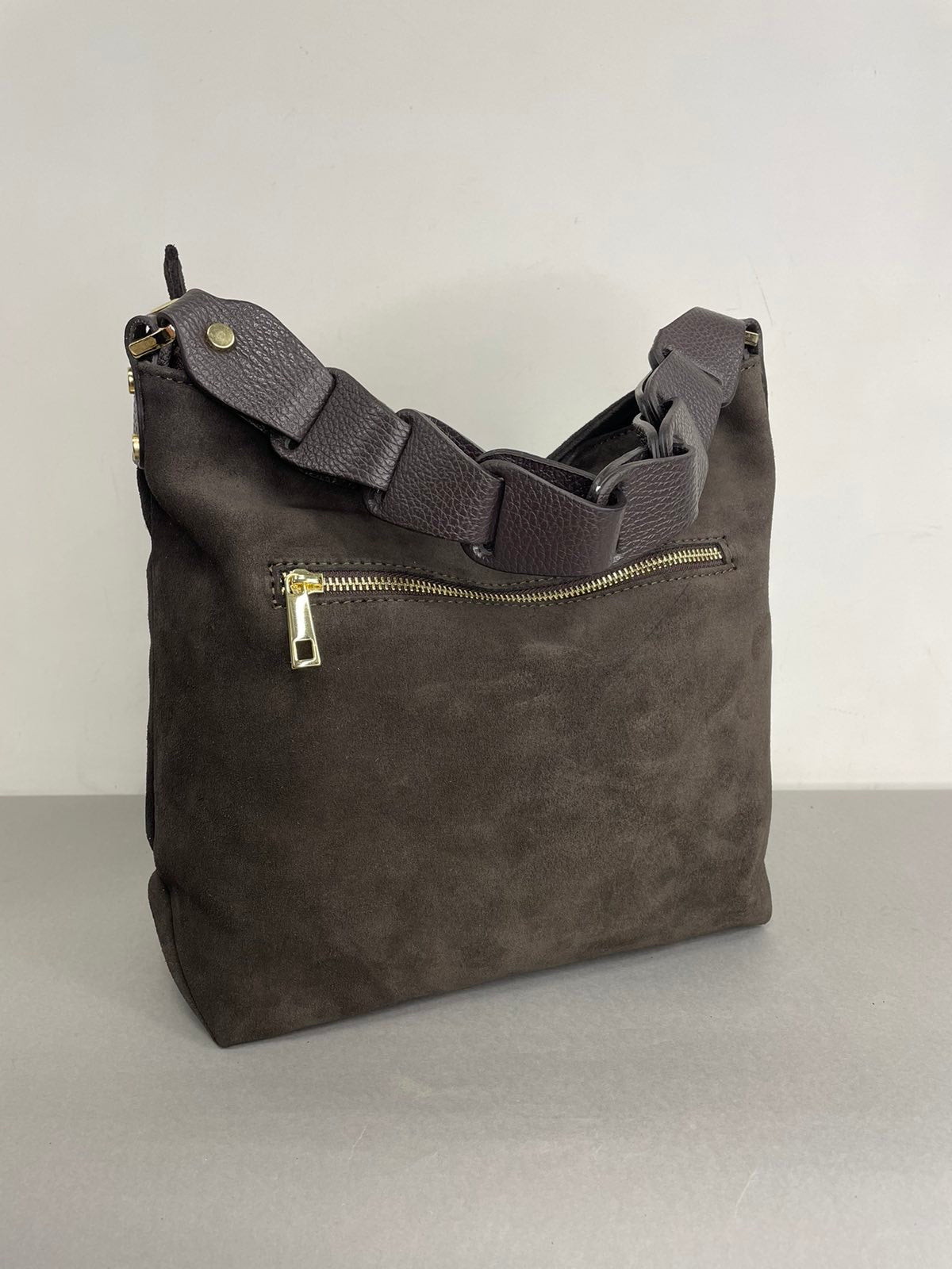 Natūralios verstos odos moteriška rankinė su pinta rankena. Itališkos odinės rankinės pasižymi aukšta kokybe ir stilingu dizainu.