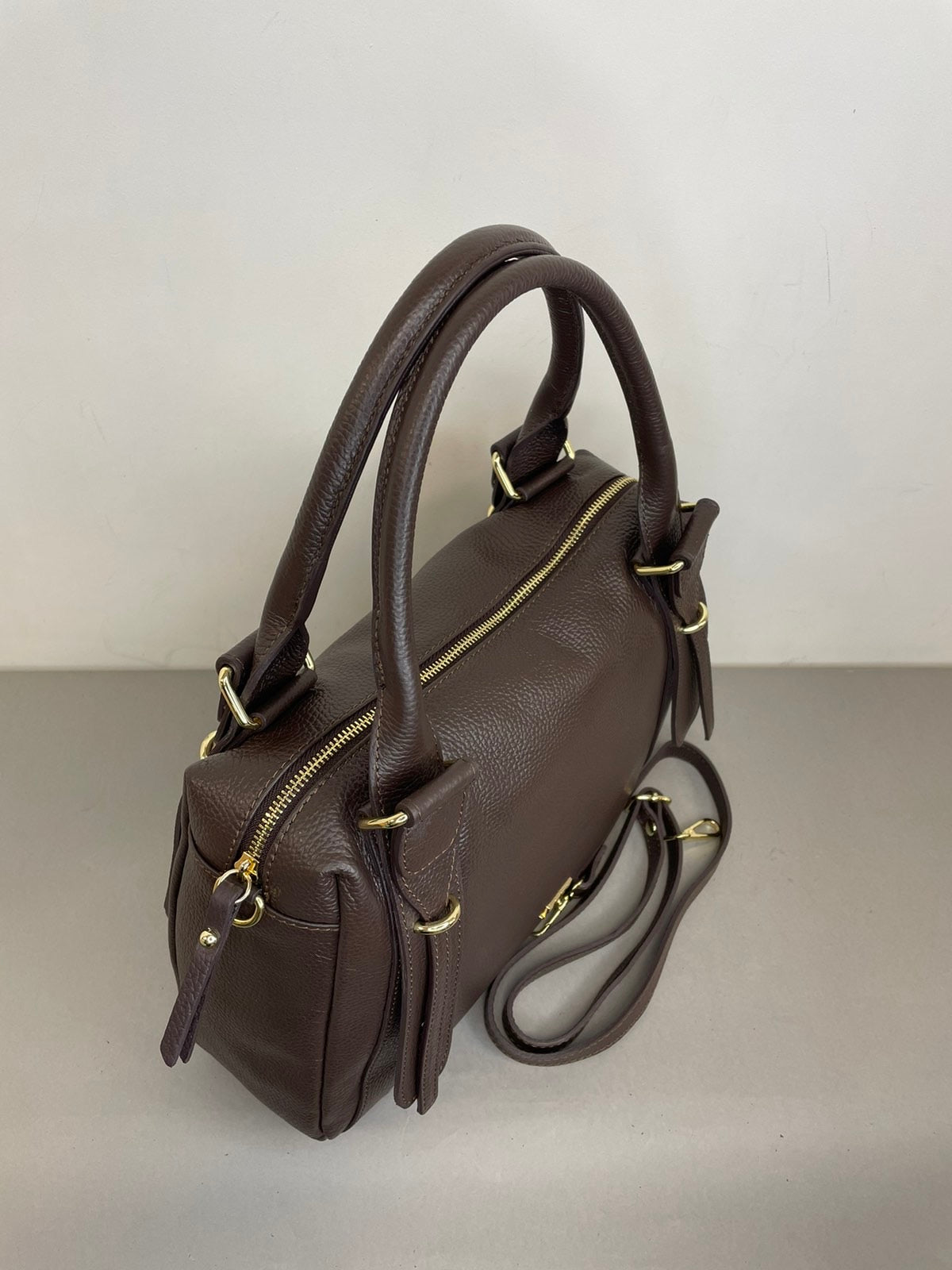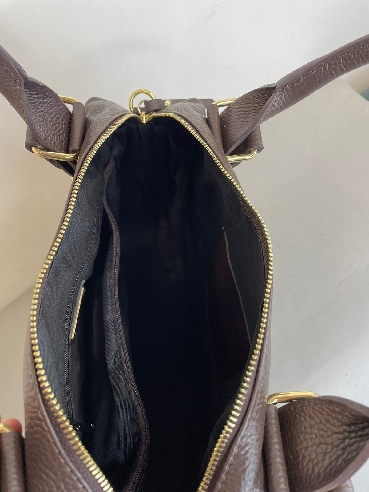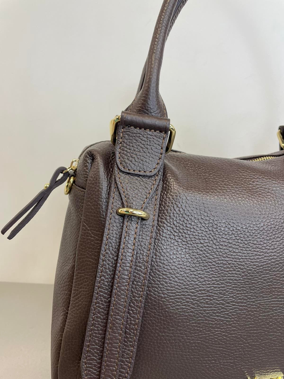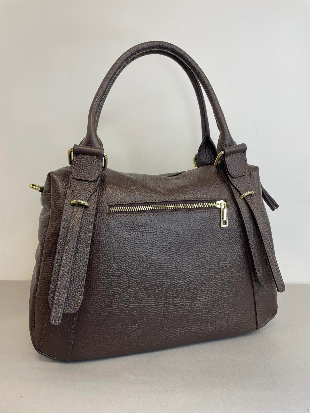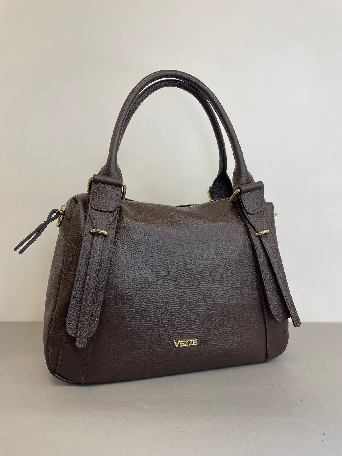 Natūralios odos Vezze moteriška rankinė. Rankinės priekį puošia nedidelis auksinės spalvos Vezze ženklelis. Itališkos odinės Vezze rankinės pasižymi aukšta kokybe ir stilingu dizainu.