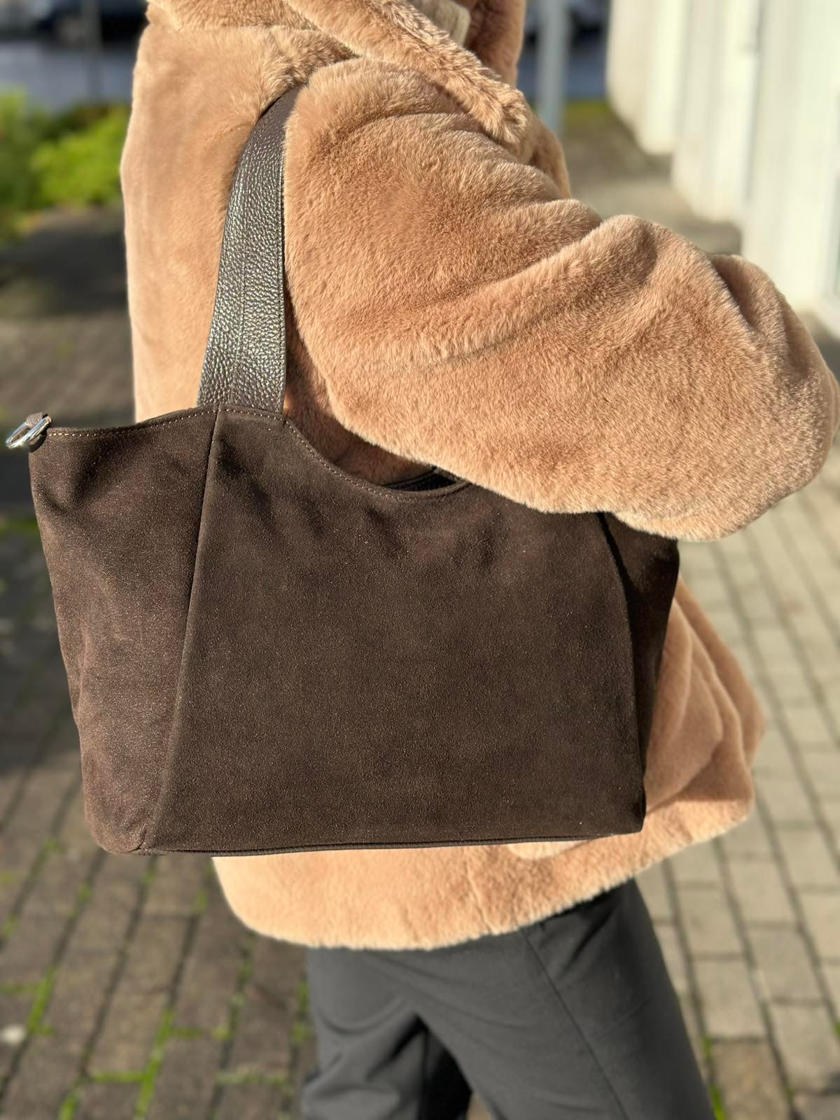 Stilinga, rudos spalvos, nautūralaus zomšo moteriška rankinė. Itališkos odinės rankinės pasižymi aukšta kokybe ir stilingu dizainu.