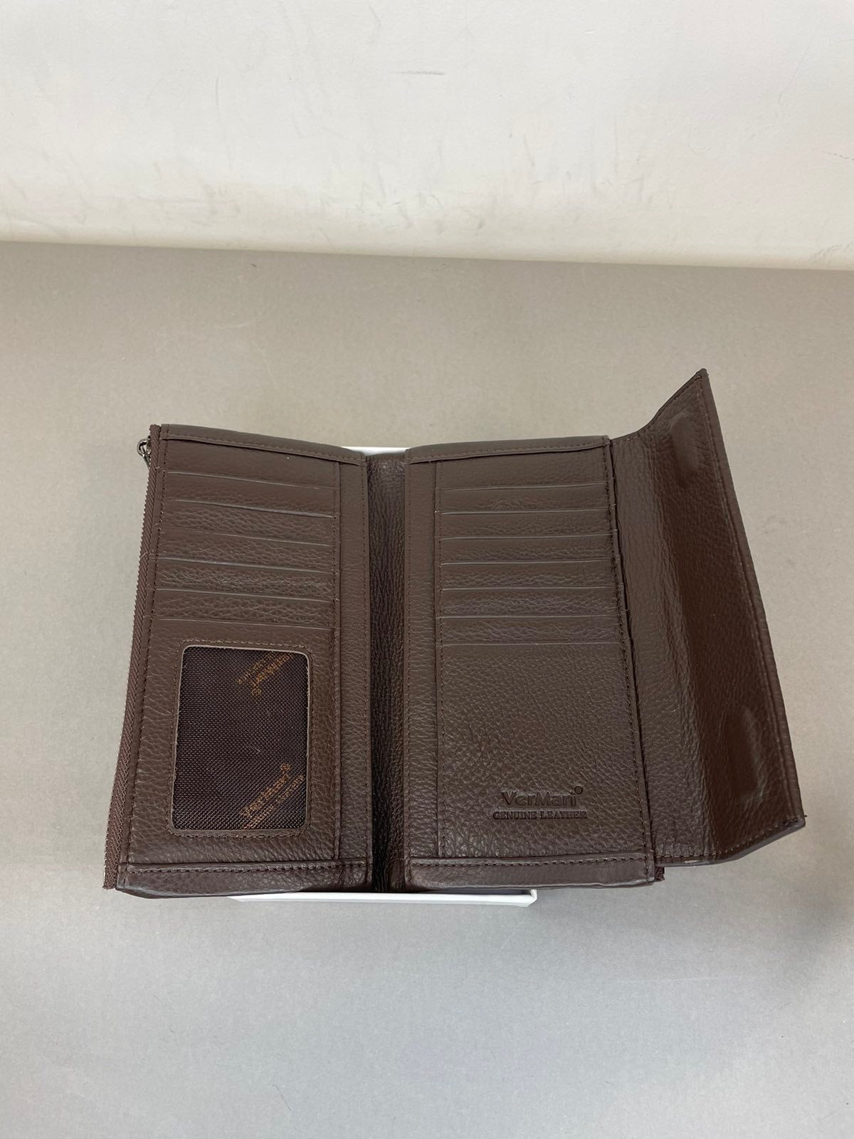 Patogi ir kokybiška, natūralios odos VerMari moteriška piniginė. Piniginės užmetimas pritvirtinamas megnetu, plačiai ir patogiai atsidarantis vidus talpina 13 kortelių, bei turi du užtrauktuku užsegamus skyrelius.