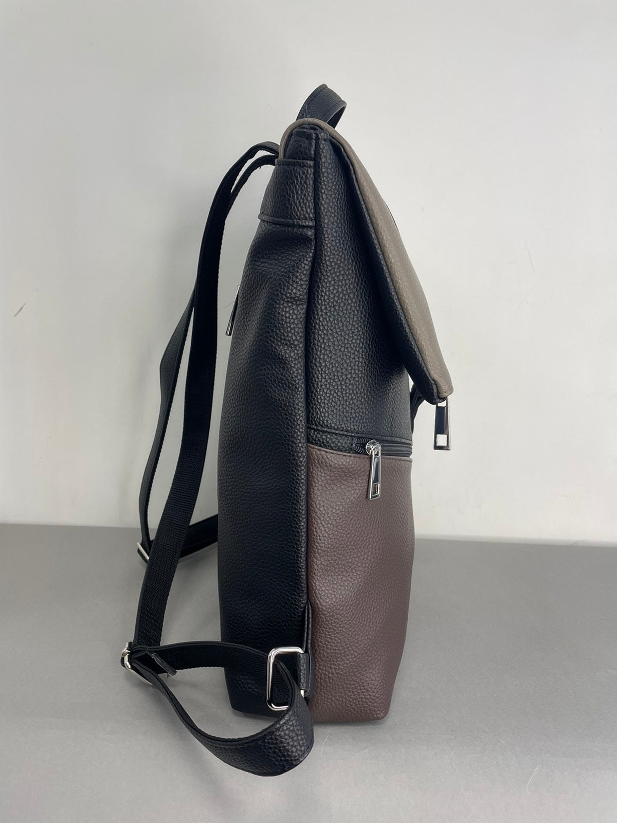 Lietuviško prekinio ženklo Sominta kuprinė moterims. Šis modelis laisvai telpina A4 formatą, kuprinės užmetimas pritvirtinamas sagtele, o vidinis skyrius užsegamas užtrauktuku.