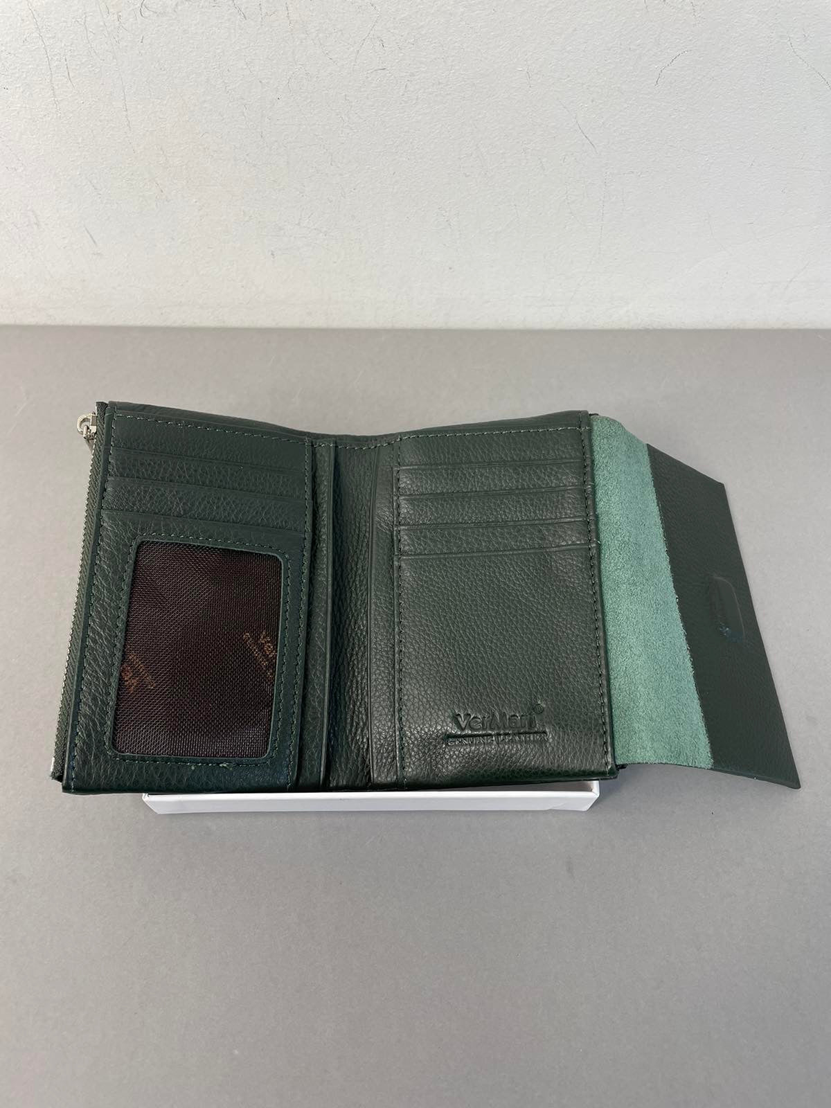 Natūralios odos, vidutinio dydžio VerMari piniginė moterims. Piniginė pagaminta iš kokybiškos, bei minkštos ir malonios laikyti rankoje natūralios odos. Piniginėje telpa 7 kortelės, turi skyrių kupiūroms ir du užtrauktuku užsegamas kišenėles. Piniginė uždaromos tvirtai prisispaudžiančiu magnetu.