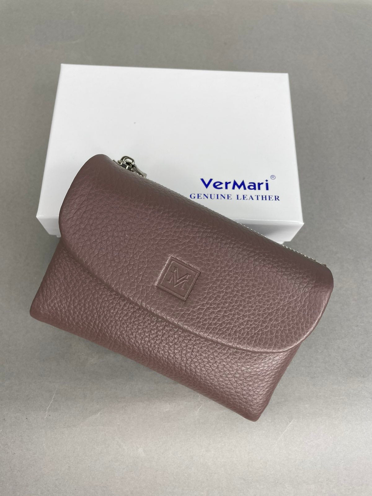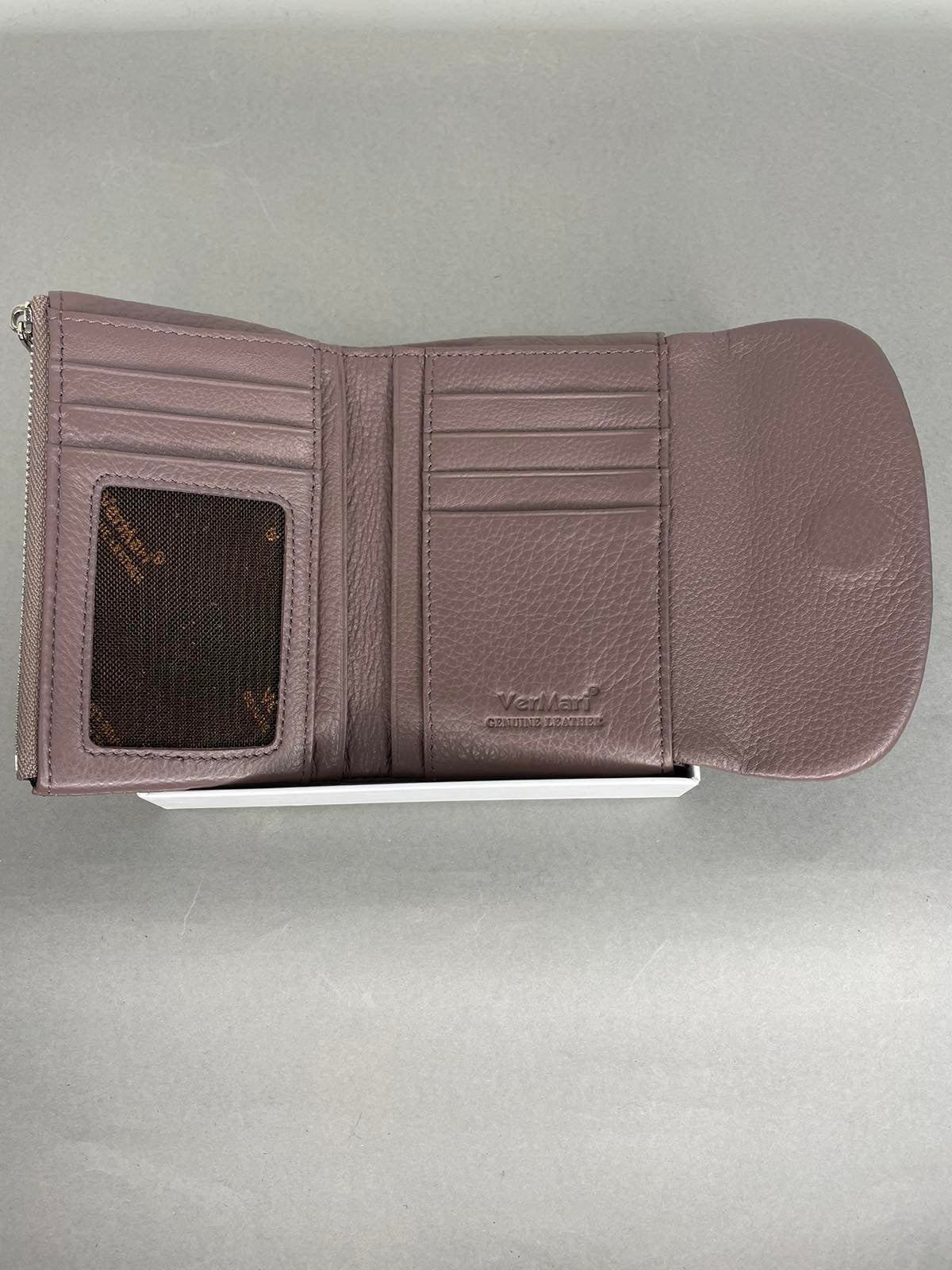 Natūralios odos, vidutinio dydžio VerMari piniginė moterims. Piniginė pagaminta iš kokybiškos, bei minkštos ir malonios laikyti rankoje natūralios odos. Piniginė talpina 7 korteles, turi skyrių kupiūroms ir du užtrauktuku užsegamas kišenėlis. Piniginės uždaromos tvirtai prisispaudžiančiu magnetu.