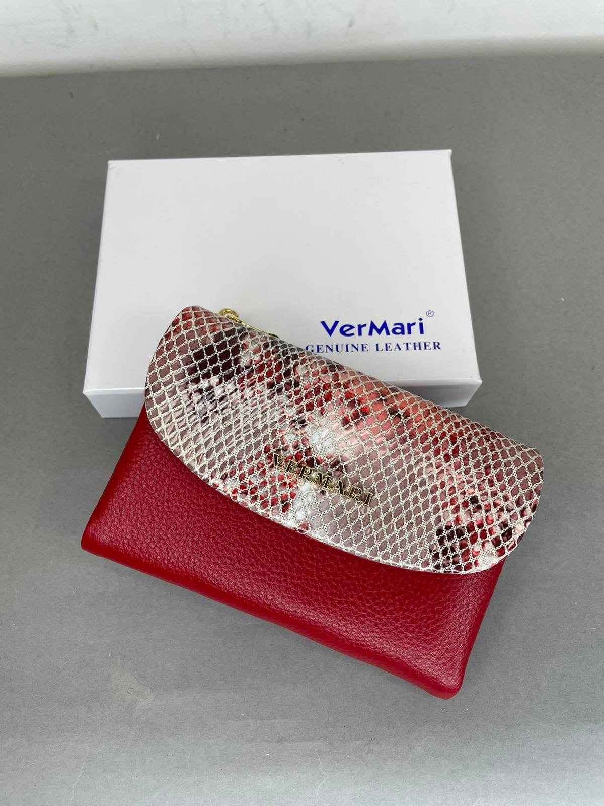 Natūralios odos, vidutinio dydžio VerMari piniginė moterims. Piniginė pagamintos iš kokybiškos, bei minkštos ir malonios laikyti rankoje natūralios odos. Piniginėje talpa 7 korteles, turi skyrių kupiūroms ir du užtrauktuku užsegamas kišenėles. Piniginė uždaromos tvirtai prisispaudžiančiu magnetu.