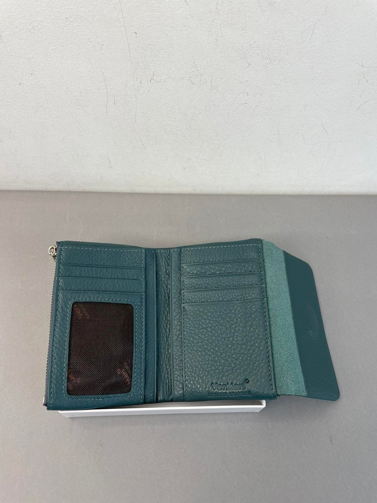 Natūralios odos, vidutinio dydžio VerMari piniginė moterims. Piniginė pagaminta iš kokybiškos, bei minkštos ir malonios laikyti rankoje natūralios odos. Piniginėje telpa 7 kortelės, turi skyrių kupiūroms ir du užtrauktuku užsegamas kišenėles. Piniginė uždaromos tvirtai prisispaudžiančiu magnetu.
