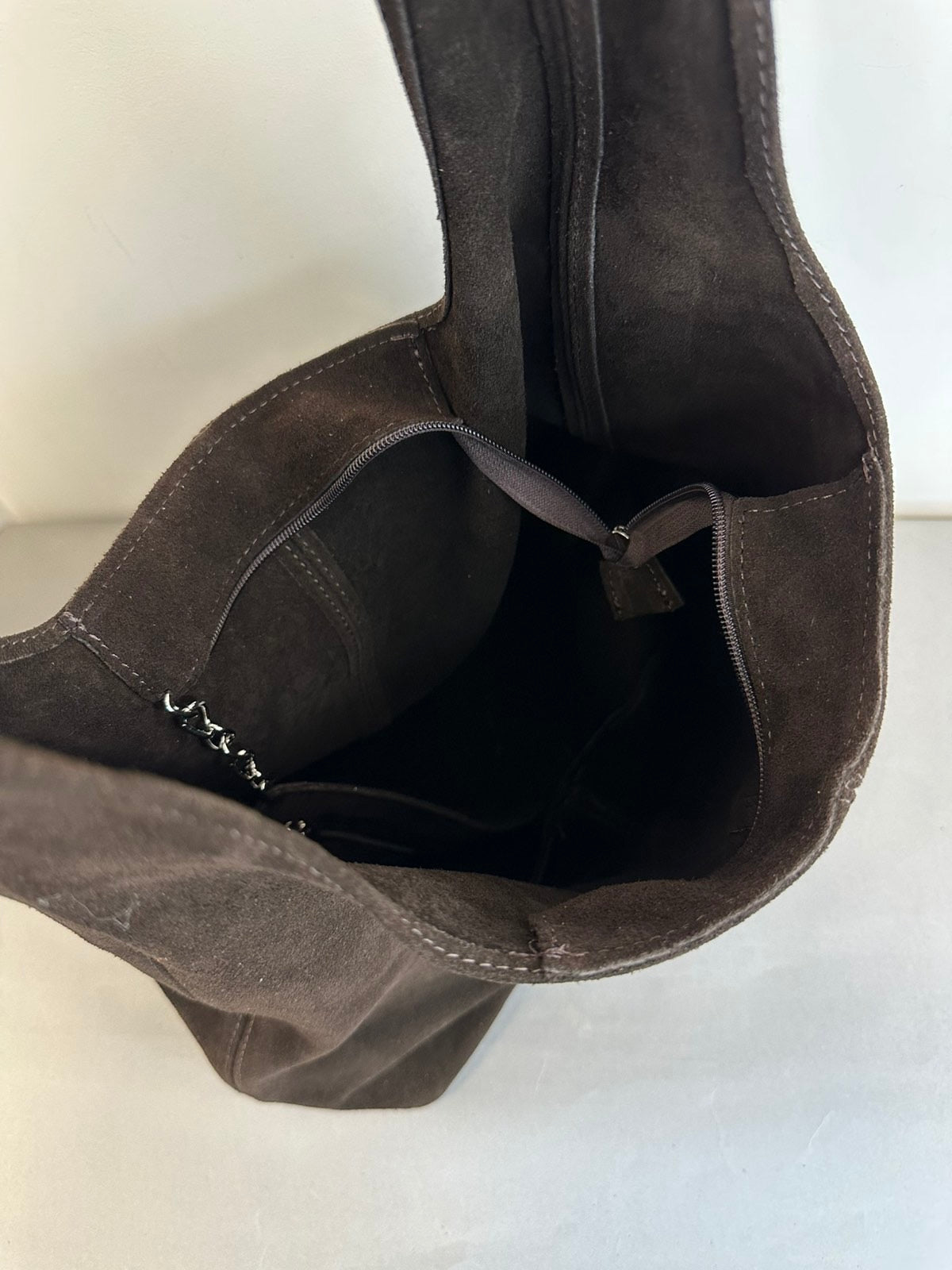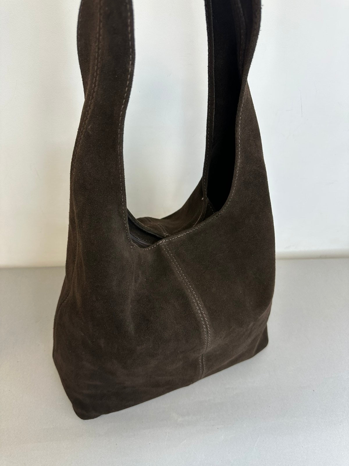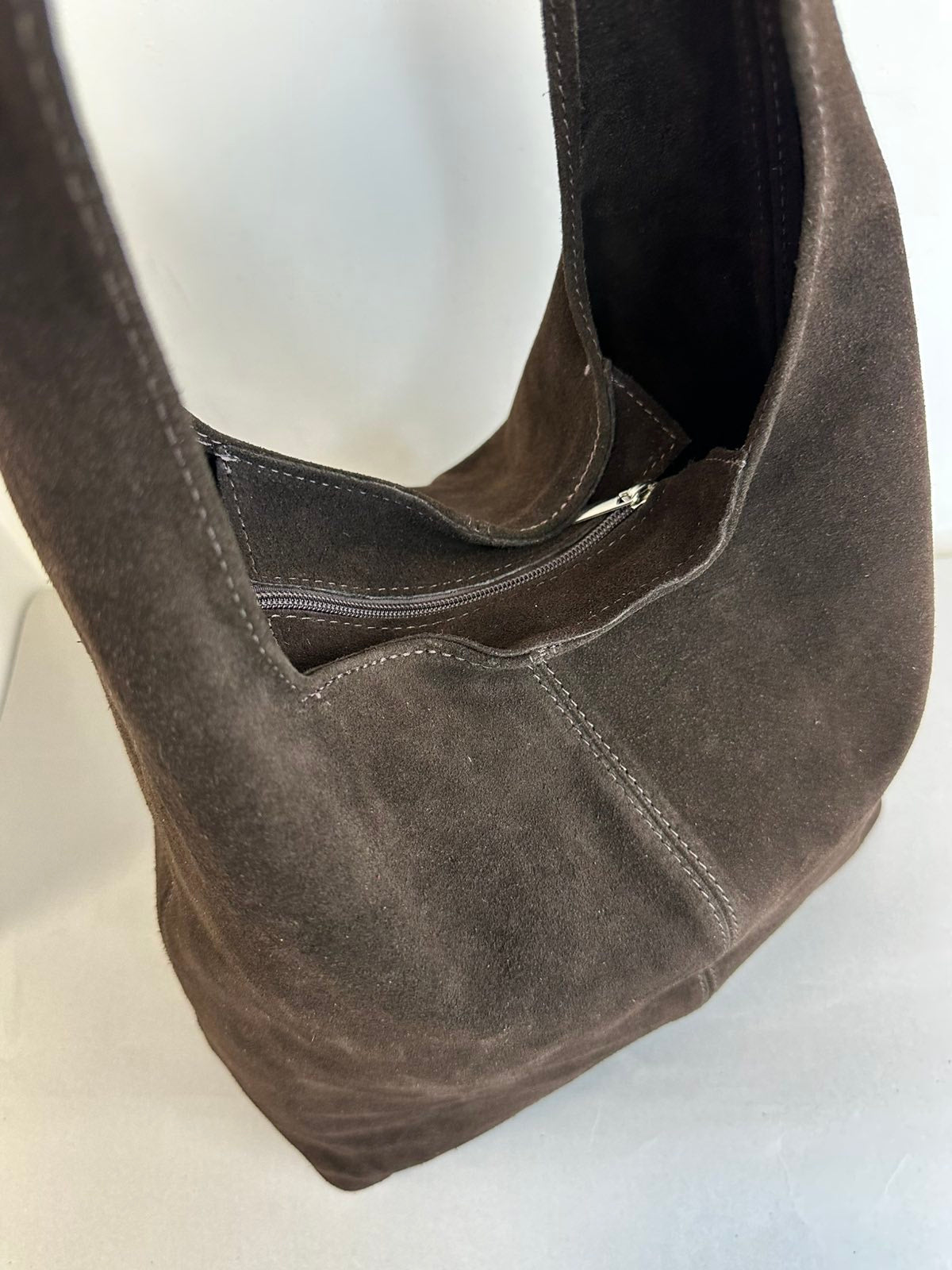 Tamsiai rudos spalvos, verstos natūralios odos moteriška rankinė.