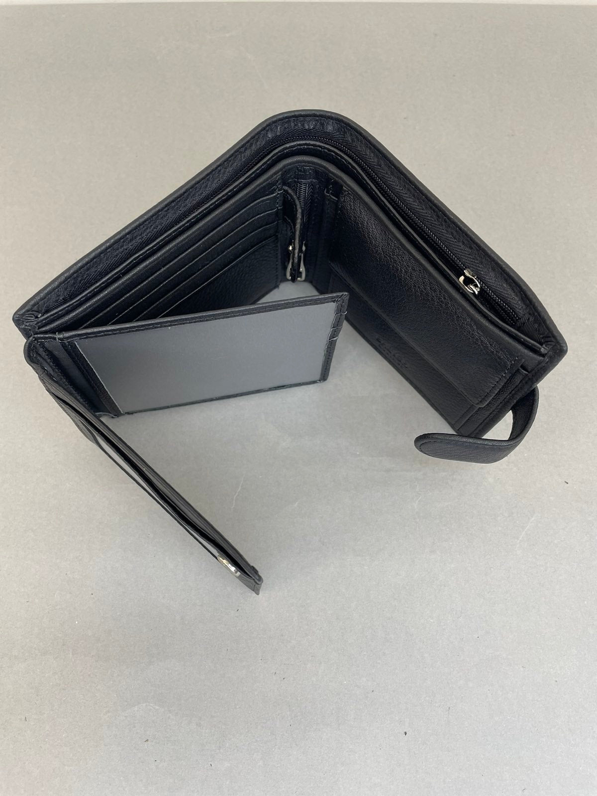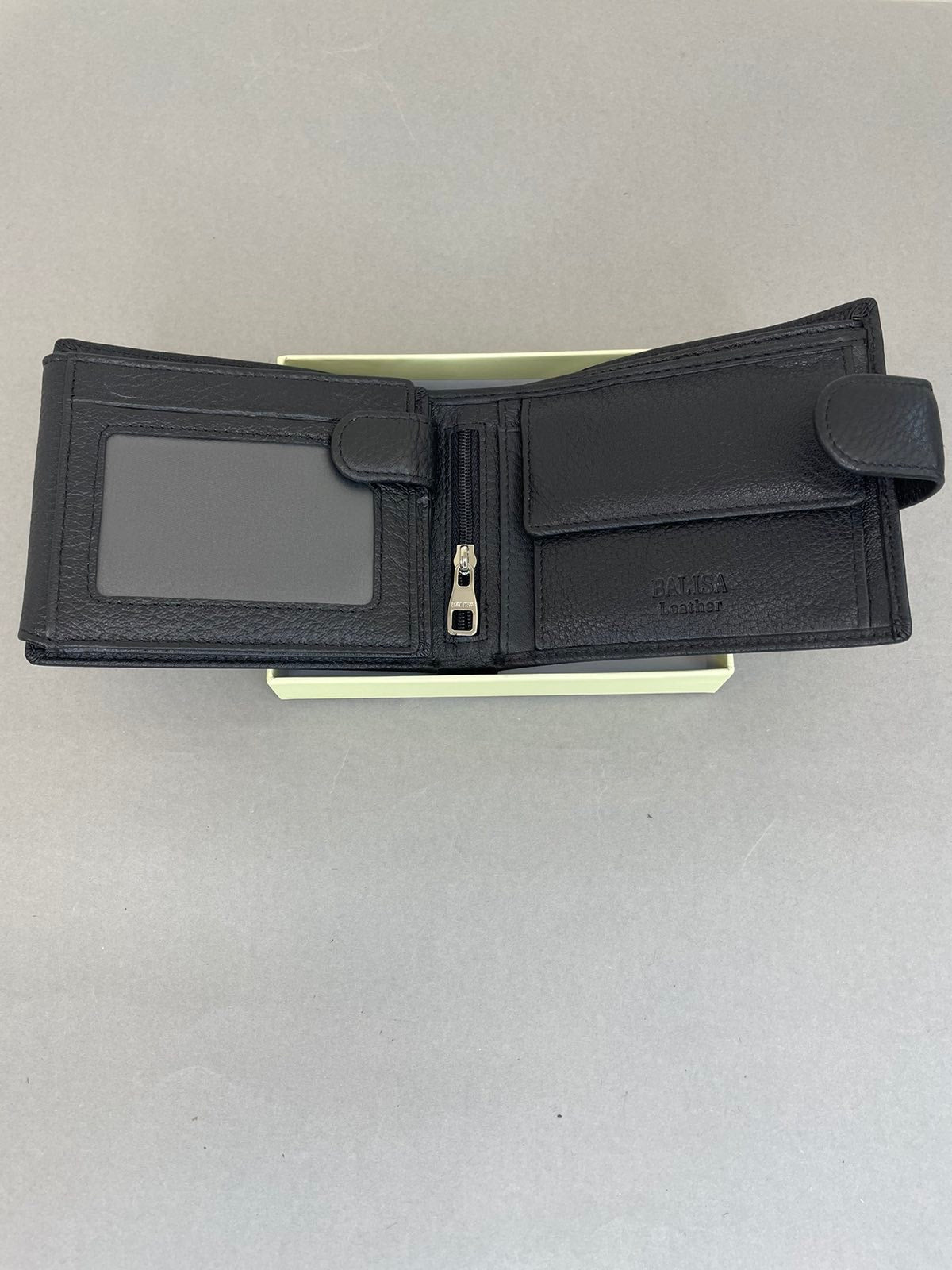 Klasikinio modelio, natūralios odos vyriška piniginė su užsegimu. Piniginės oda minkšta ir maloni laikyti rankoje.
